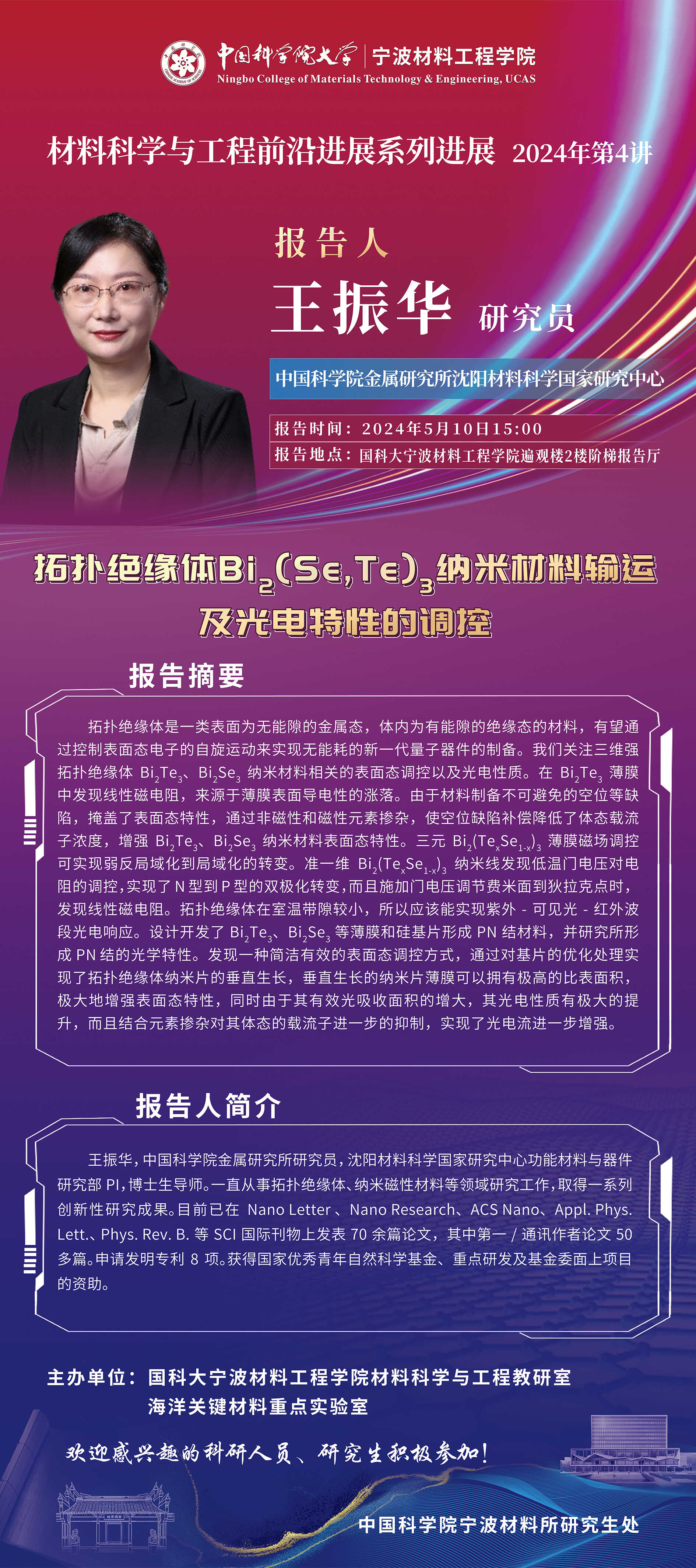 5月10号:王振华:拓扑绝缘体Bi2(Se,Te)3纳米材料输运及光电特性的调控
