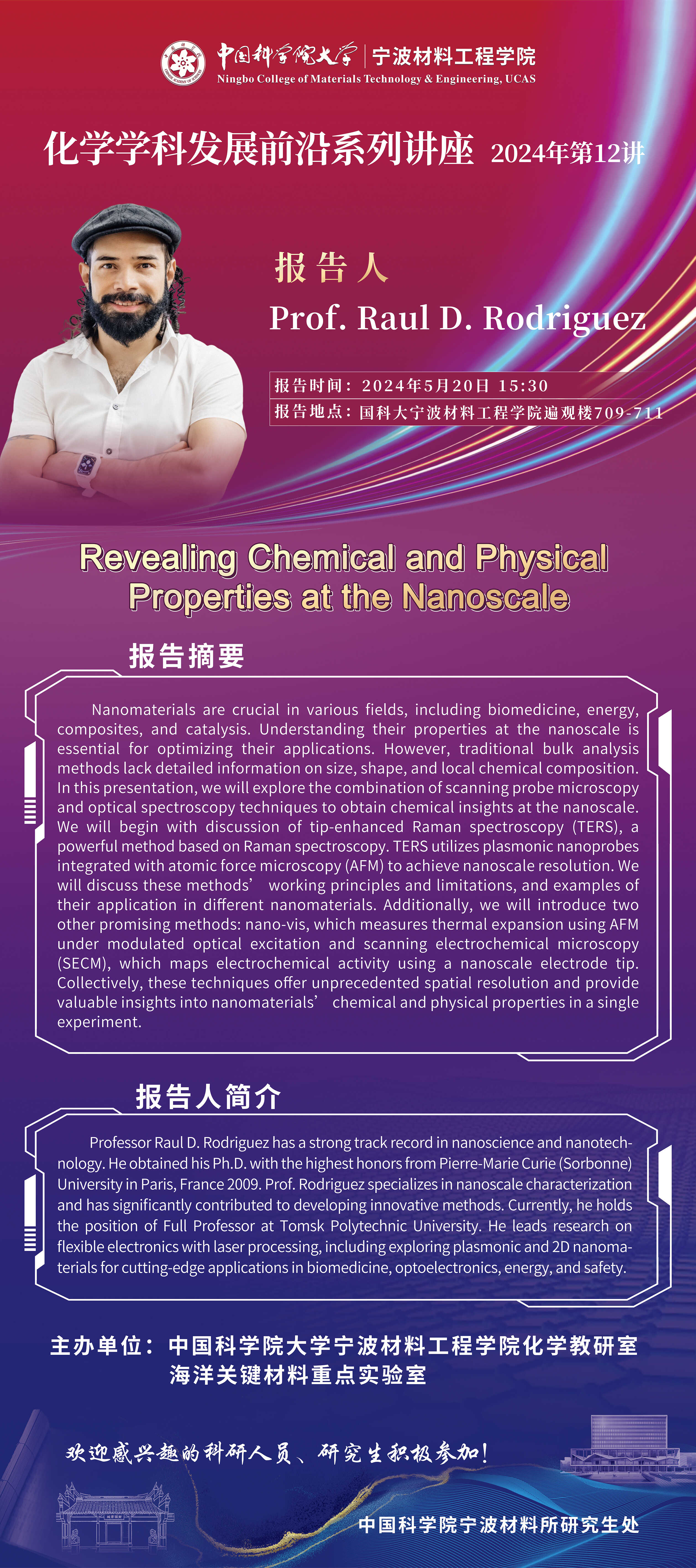 5月20日:Prof. Raul D. Rodriguez:Revealing Chemical and Physical Properties at the Nanoscale 发布:2024-05-17 点赞: 字号:小 大 打印: