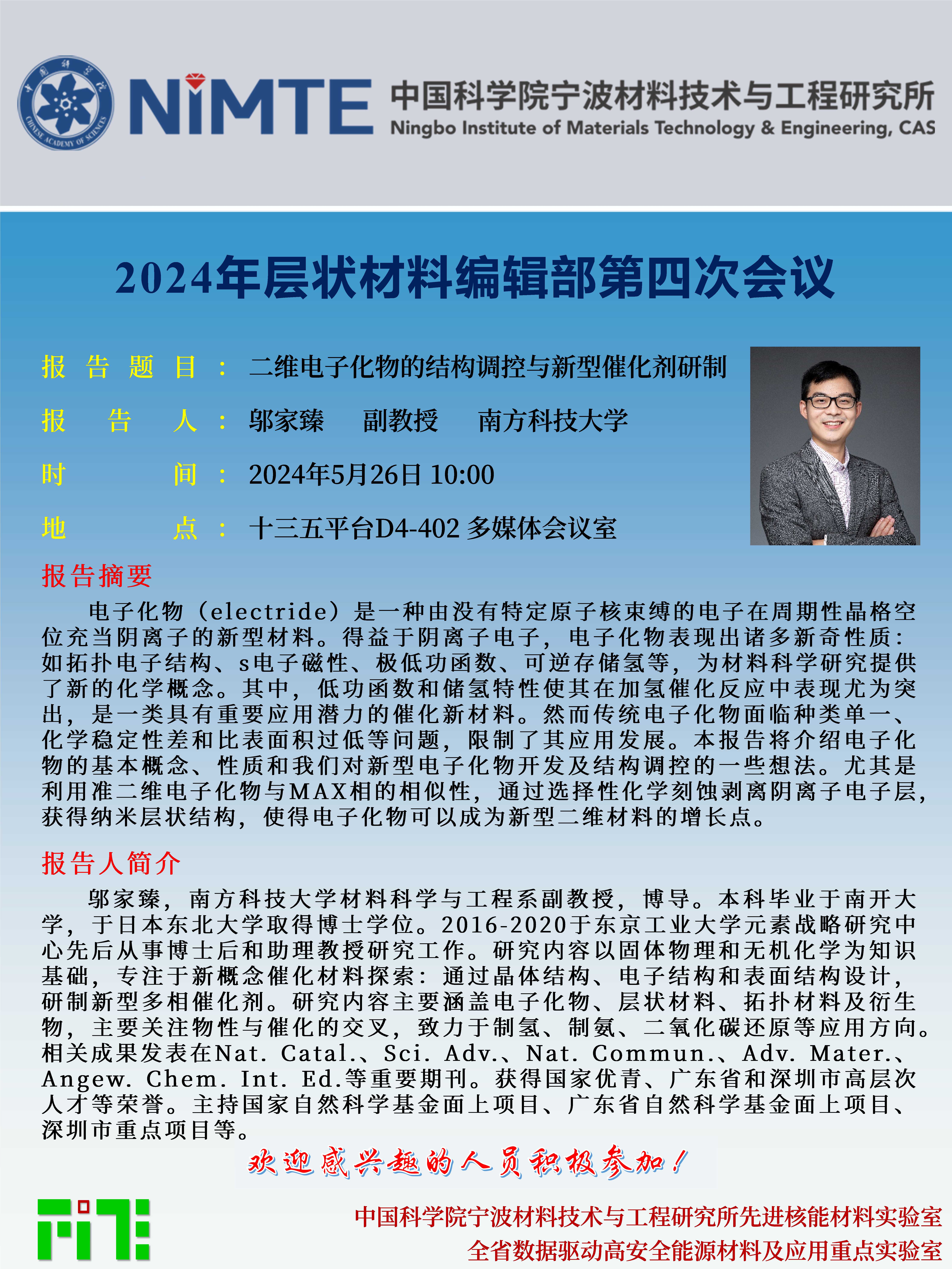 5月26日:邬家臻:二维电子化物的结构调控与新型催化剂研制