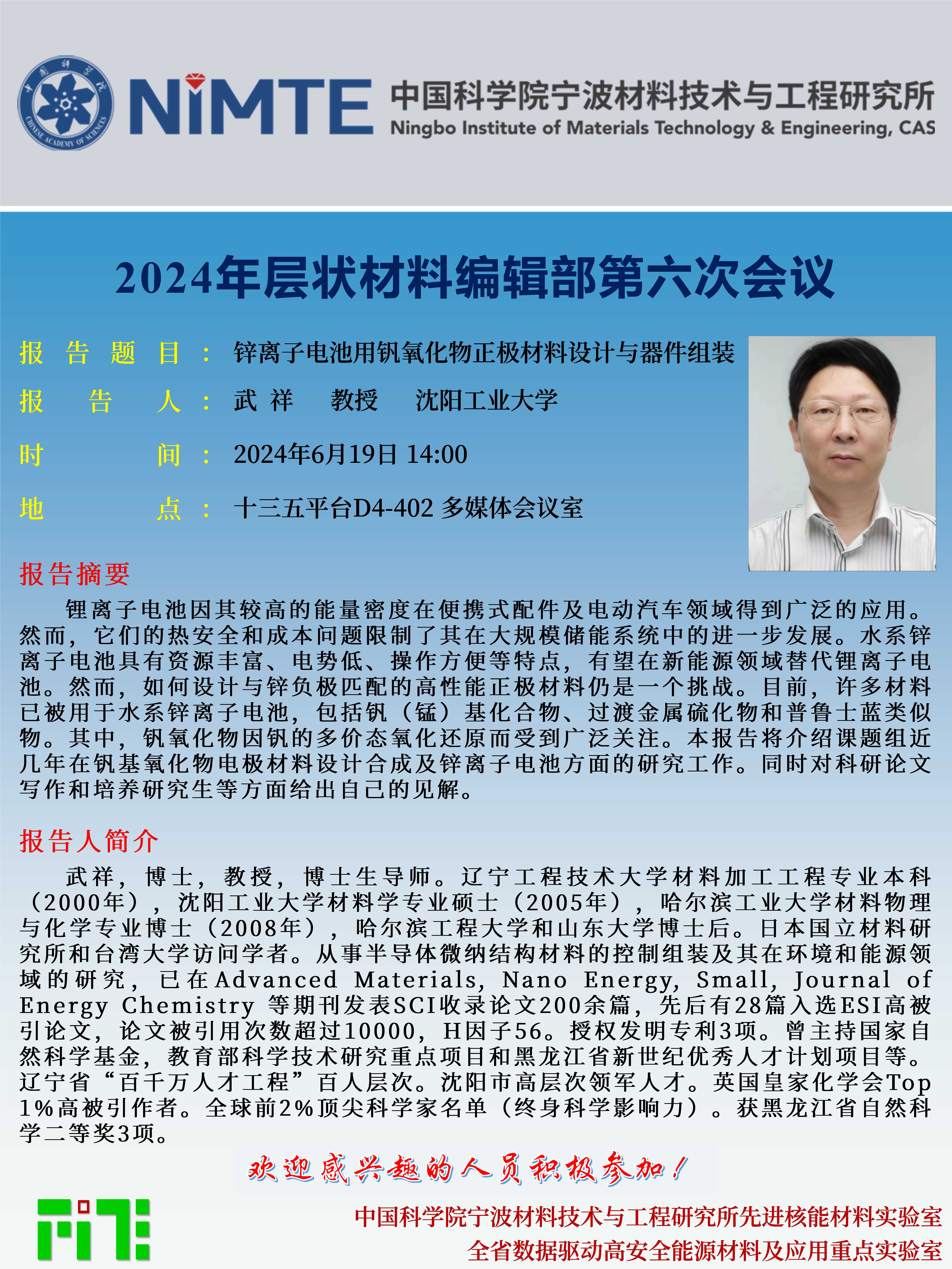 6月19日:武祥:锌离子电池用钒氧化物正极材料设计与器件组装