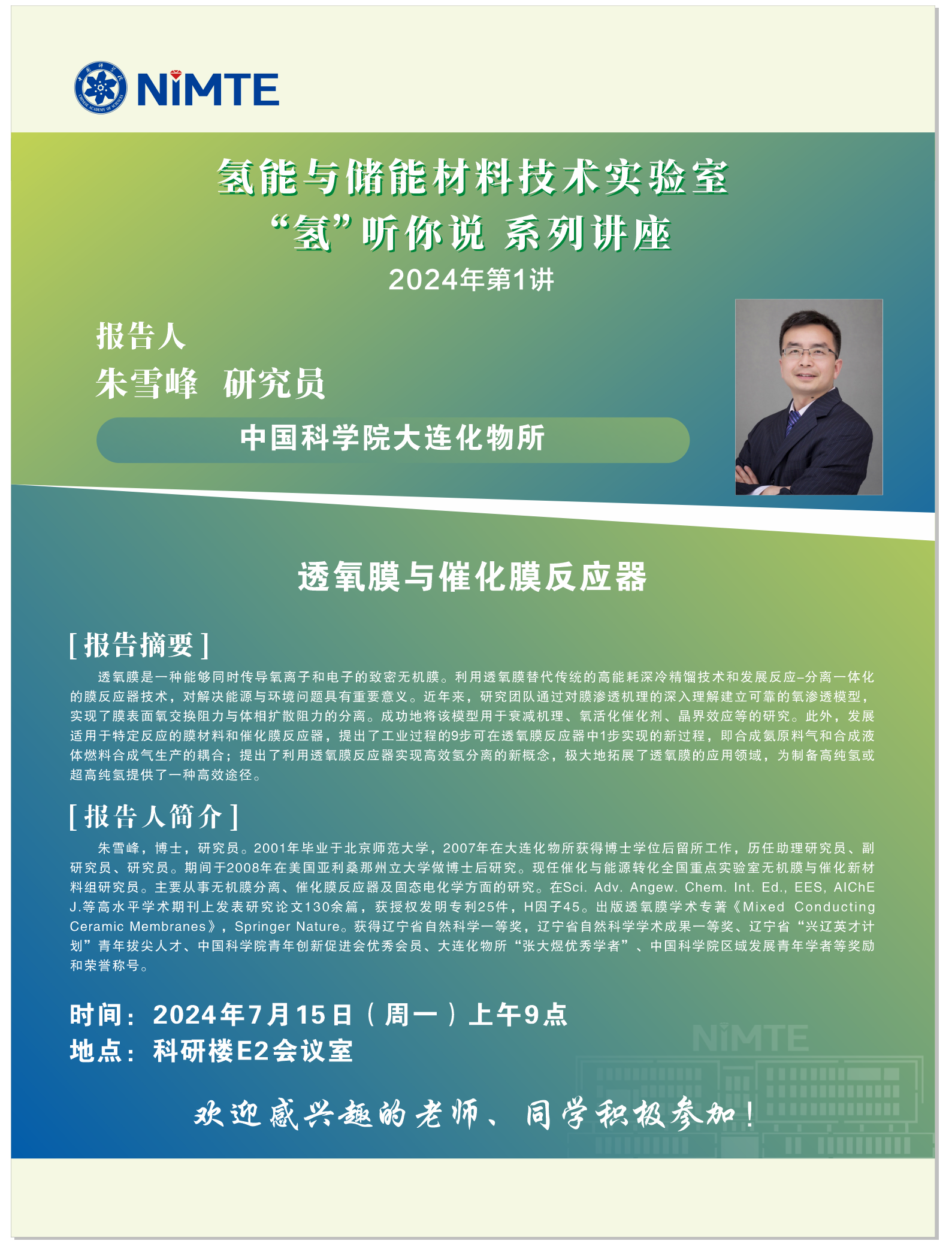 7月15日:朱雪峰:透氧膜与催化膜反应器