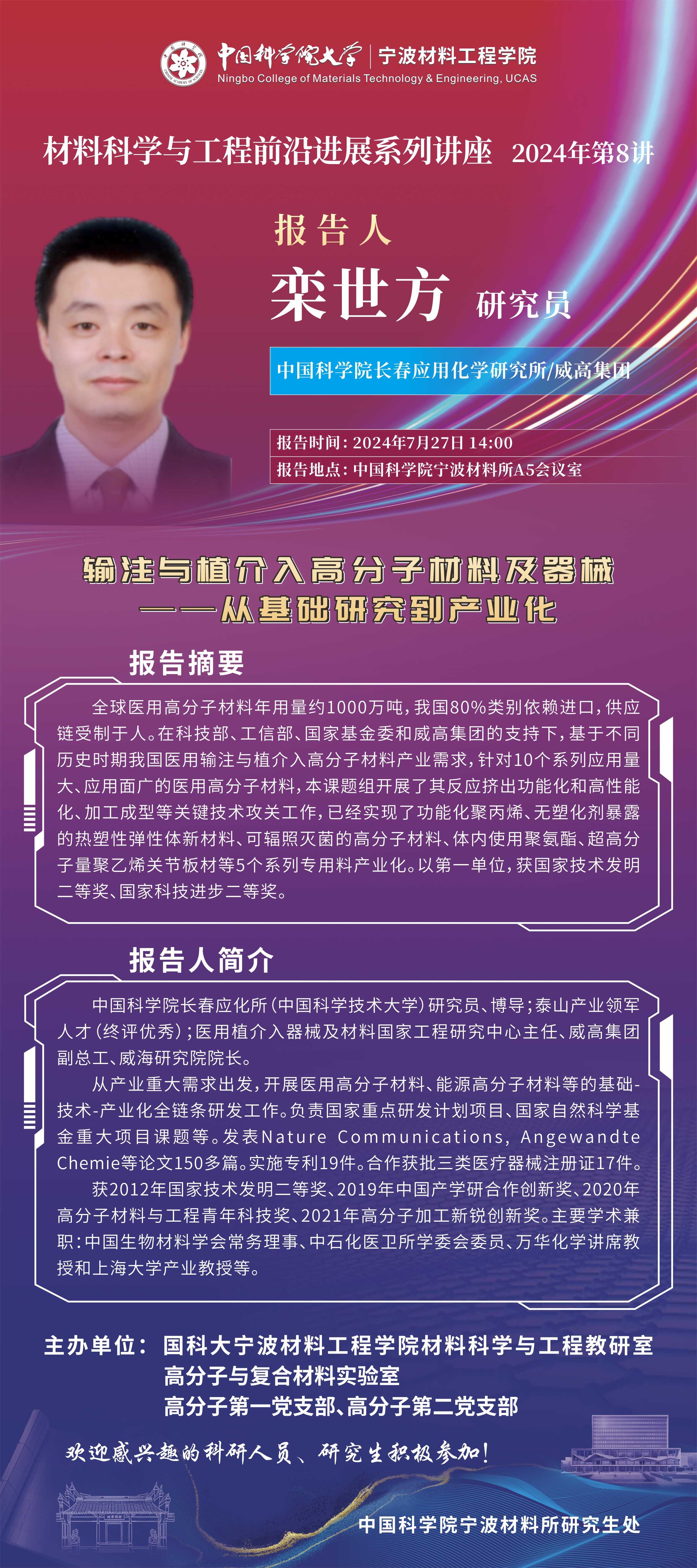 7月27日:栾世方:输注与植介入高分子材料及器械——从基础研究到产业化