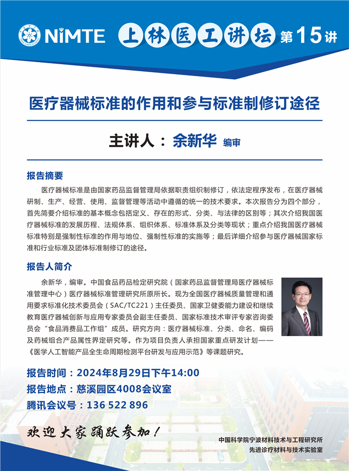8月29日:余新华:医疗器械标准的作用和参与标准制修订途径