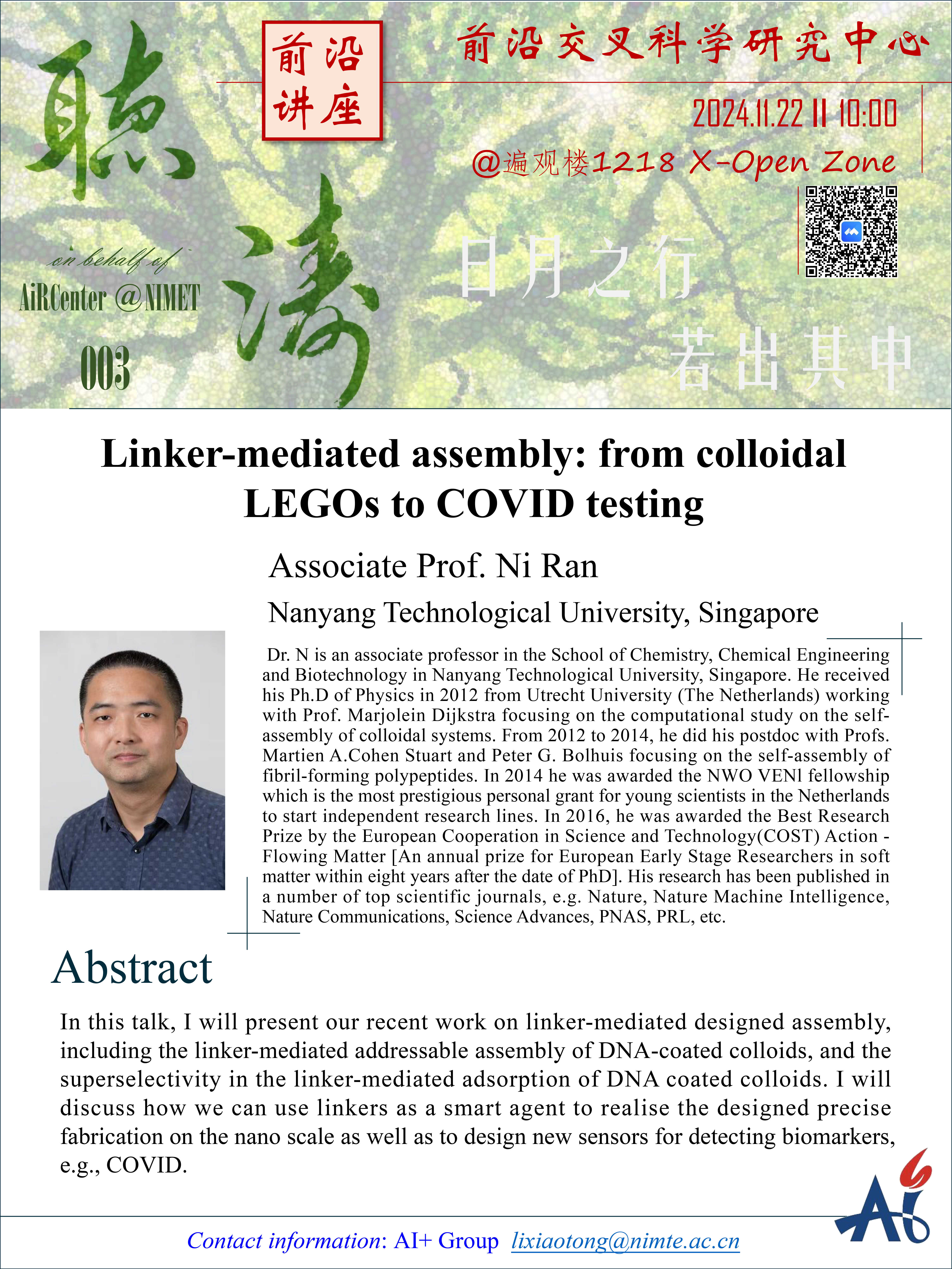 11月22日:倪冉:Linker-mediated assembly: from colloidal LEGOs to COVID testing 发布:2024-11-18 点赞: 字号:小 大 打印:
