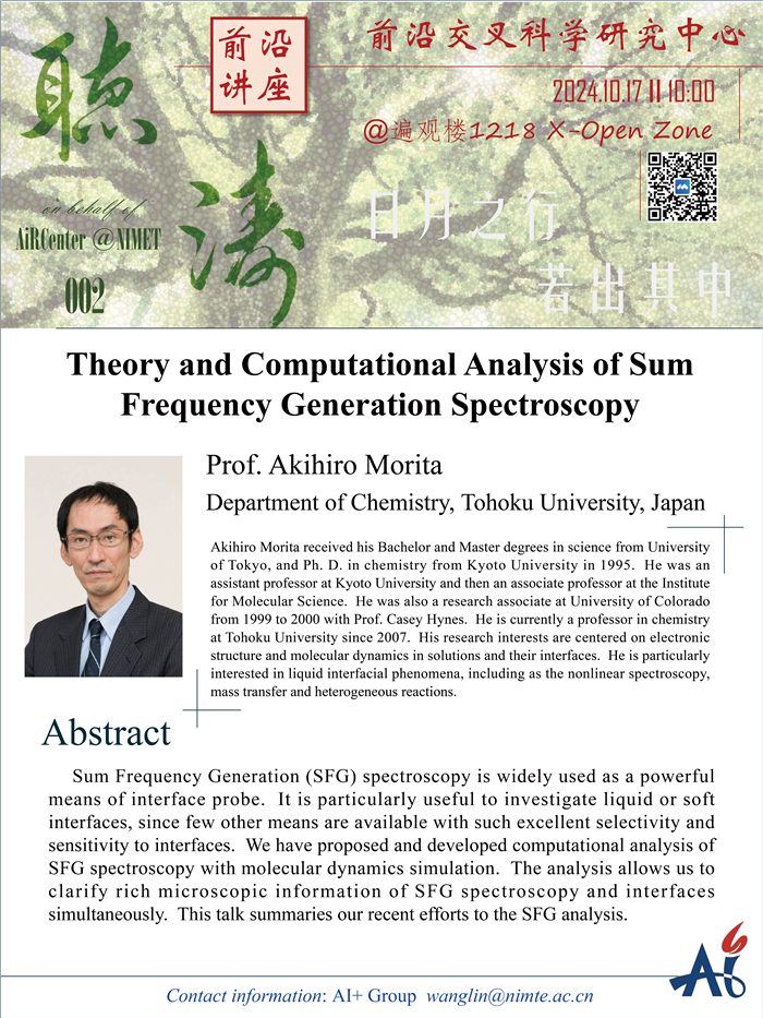 10月17日:森田明弘:Theory and Computational Analysis of Sum Frequency Generation Spectroscopy 发布:2024-10-09 点赞: 字号:小 大 打印: