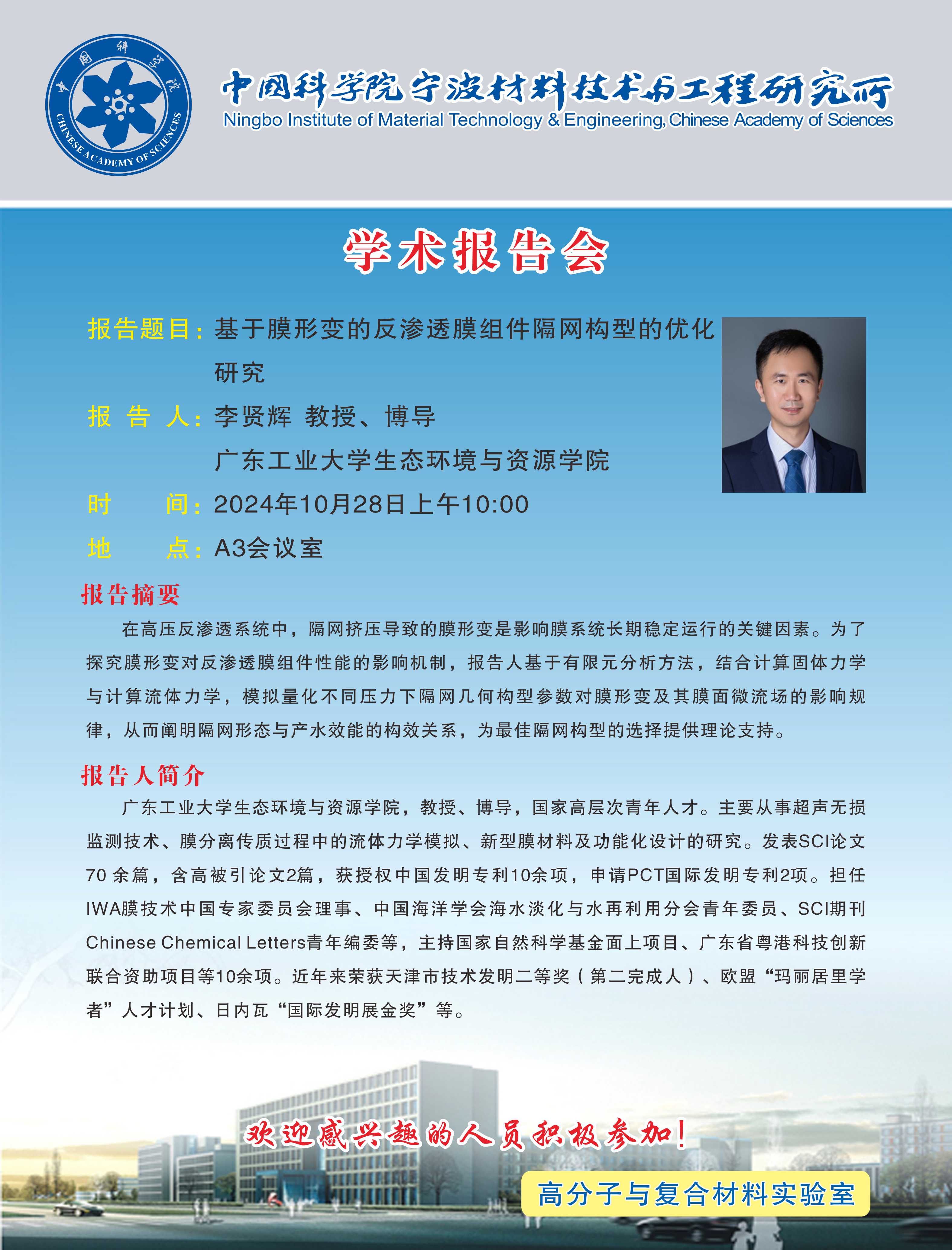 10月28日:李贤辉:基于膜形变的反渗透膜组件隔网构型的优化研究
