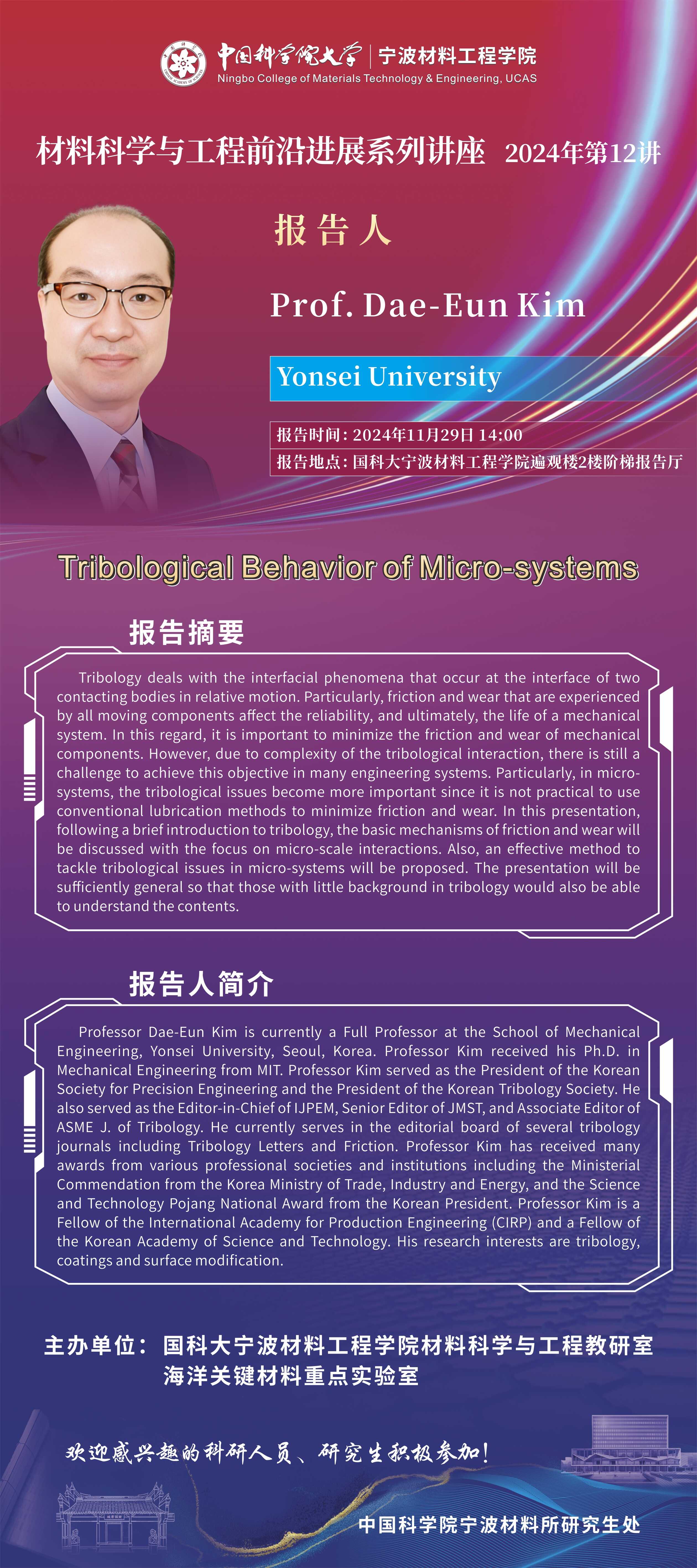 11月29日:Prof.Dae-Eun Kim:Tribological Behavior of Micro-systems