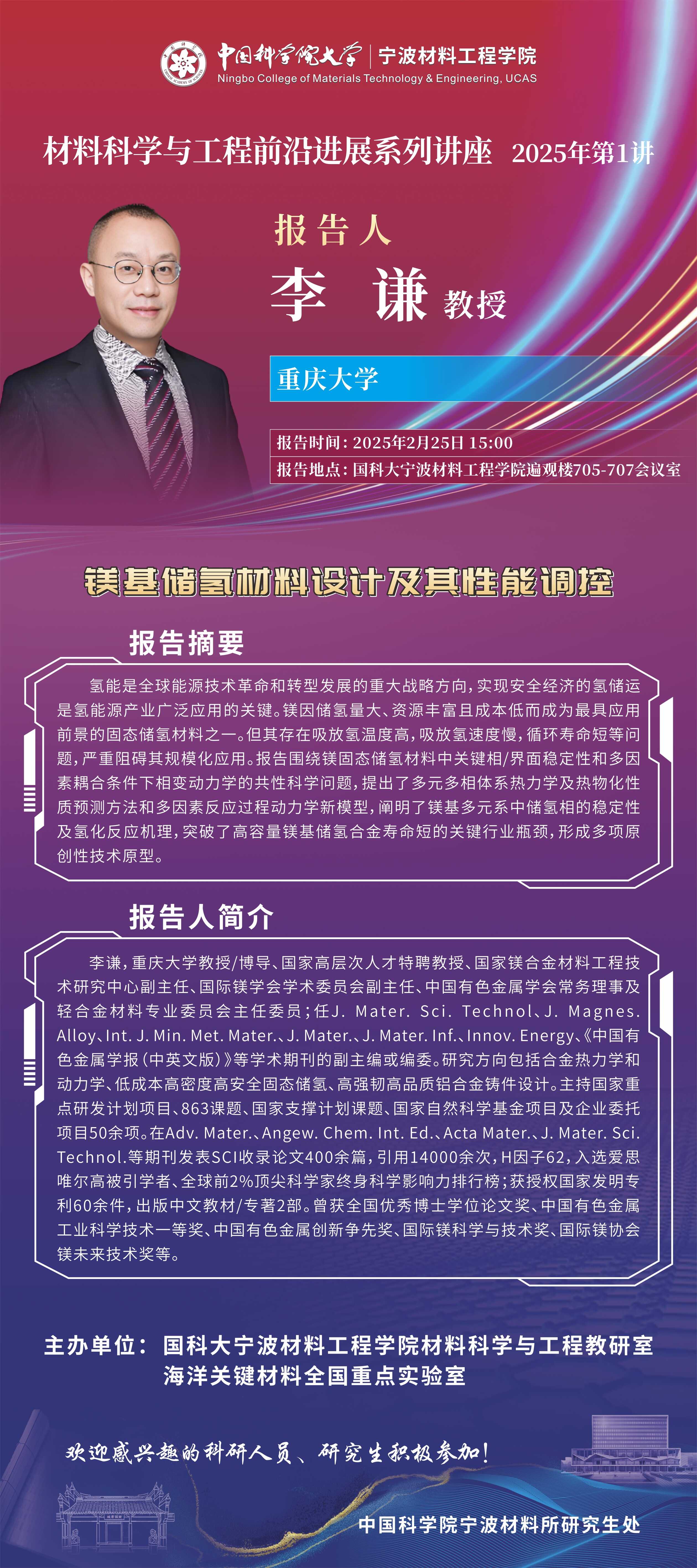 2月25号:李谦:镁基储氢材料设计及其性能调控
