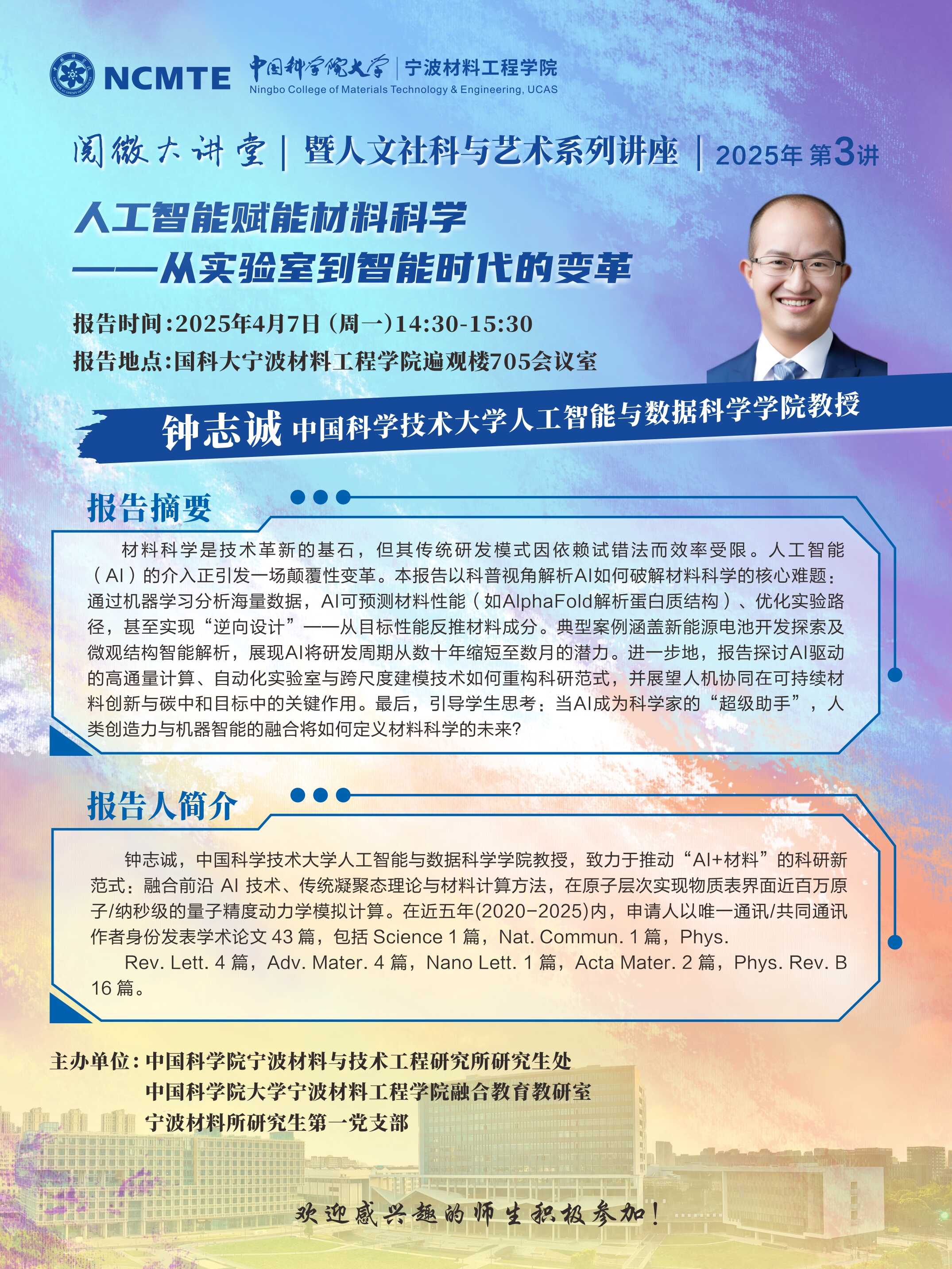 4月7日:钟志诚:人工智能赋能材料科学——从实验室到智能时代的变革