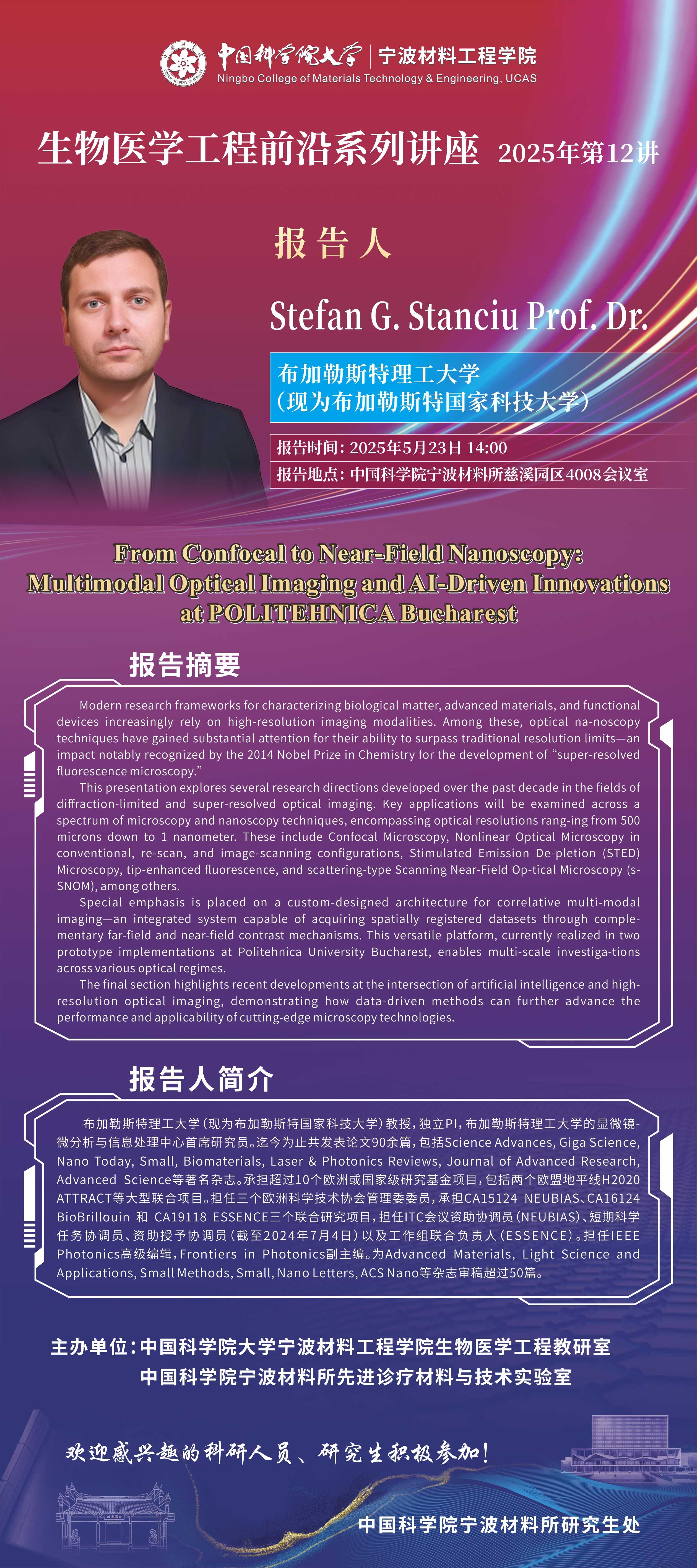 5月23日:Stefan G. Stanciu:From Confocal to Near-Field Nanoscopy:Multimodal Optical Imaging and AI-Driven Innovations at POLITEHINICA Bucharest 发布:2025-05-20 点赞: 字号:小 大 打印: