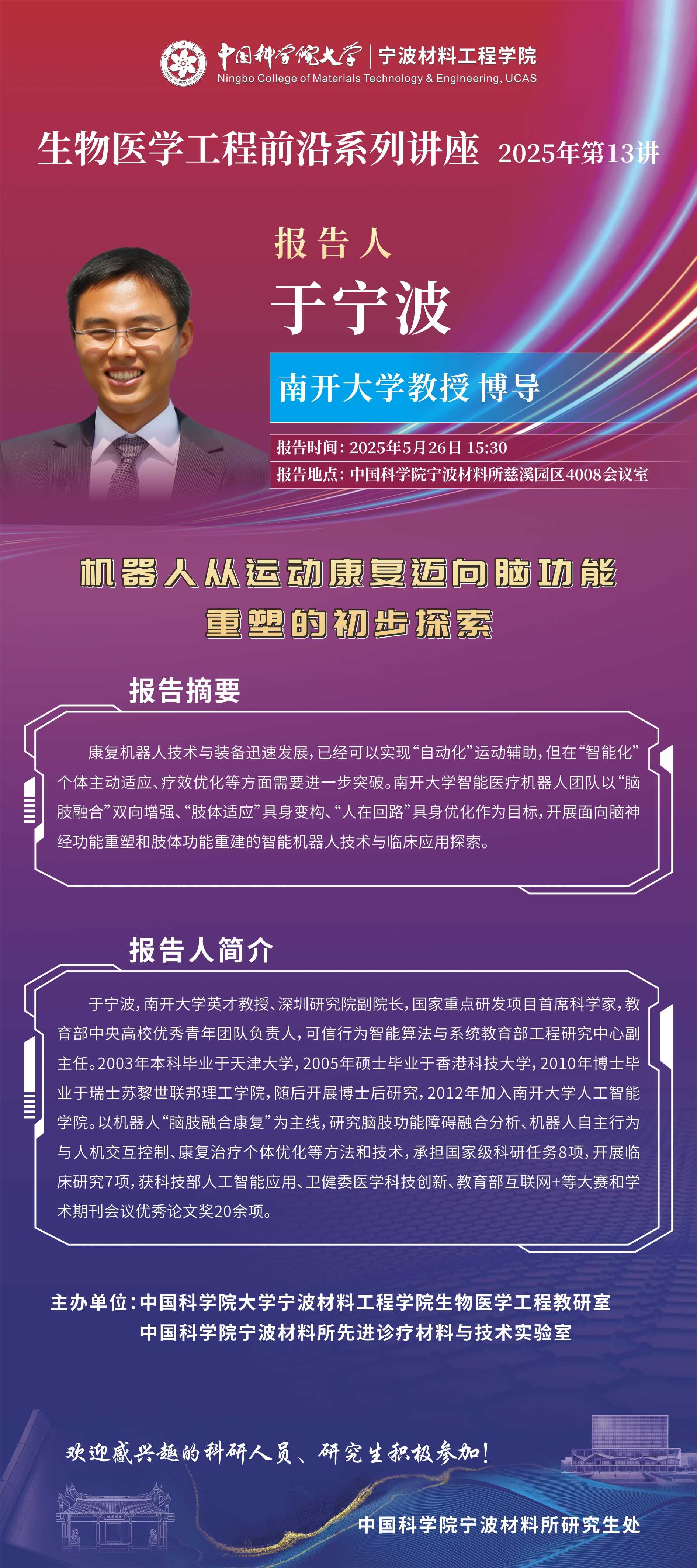 5月26日:于宁波:机器人从运动康复迈向脑功能重塑的初步探索