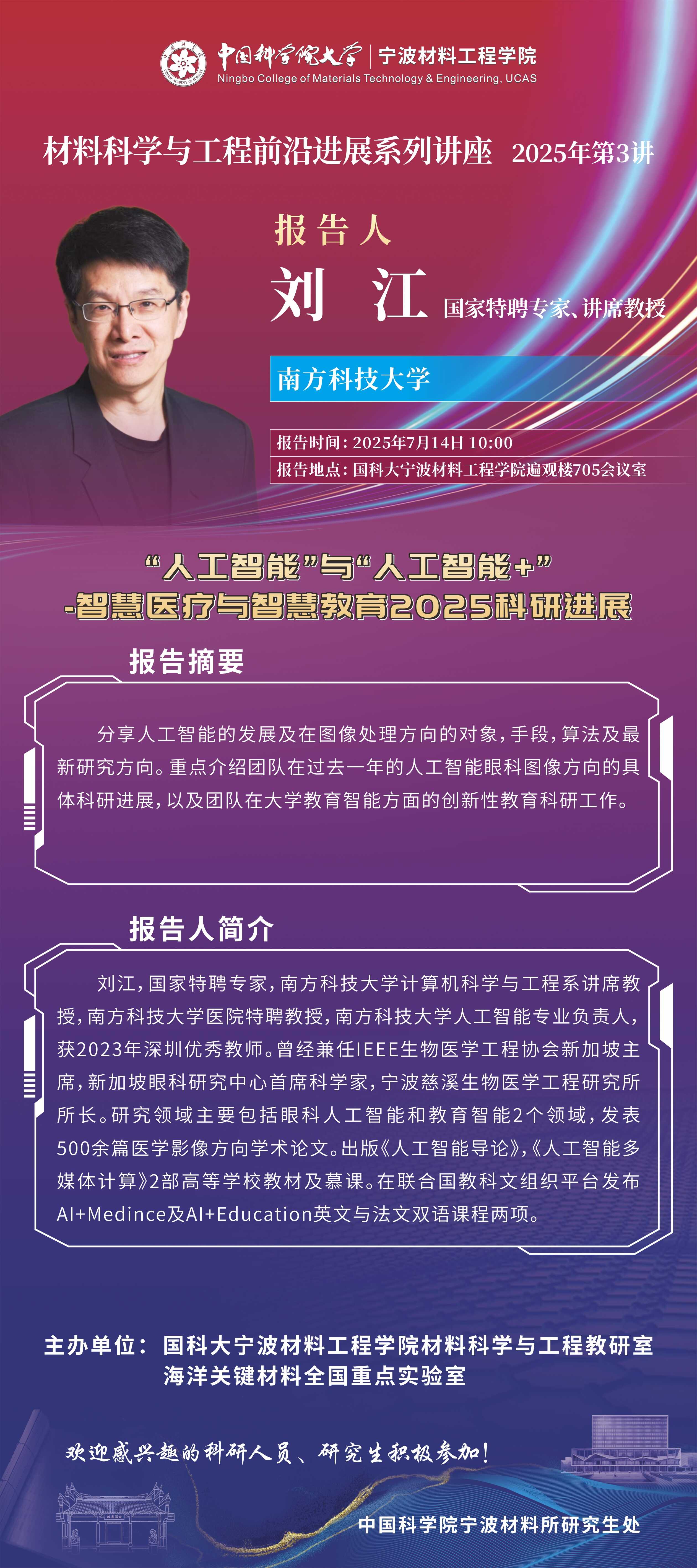 7月14日:刘江:“人工智能”与“人工智能+”——智慧医疗与智慧教育2025科研进展