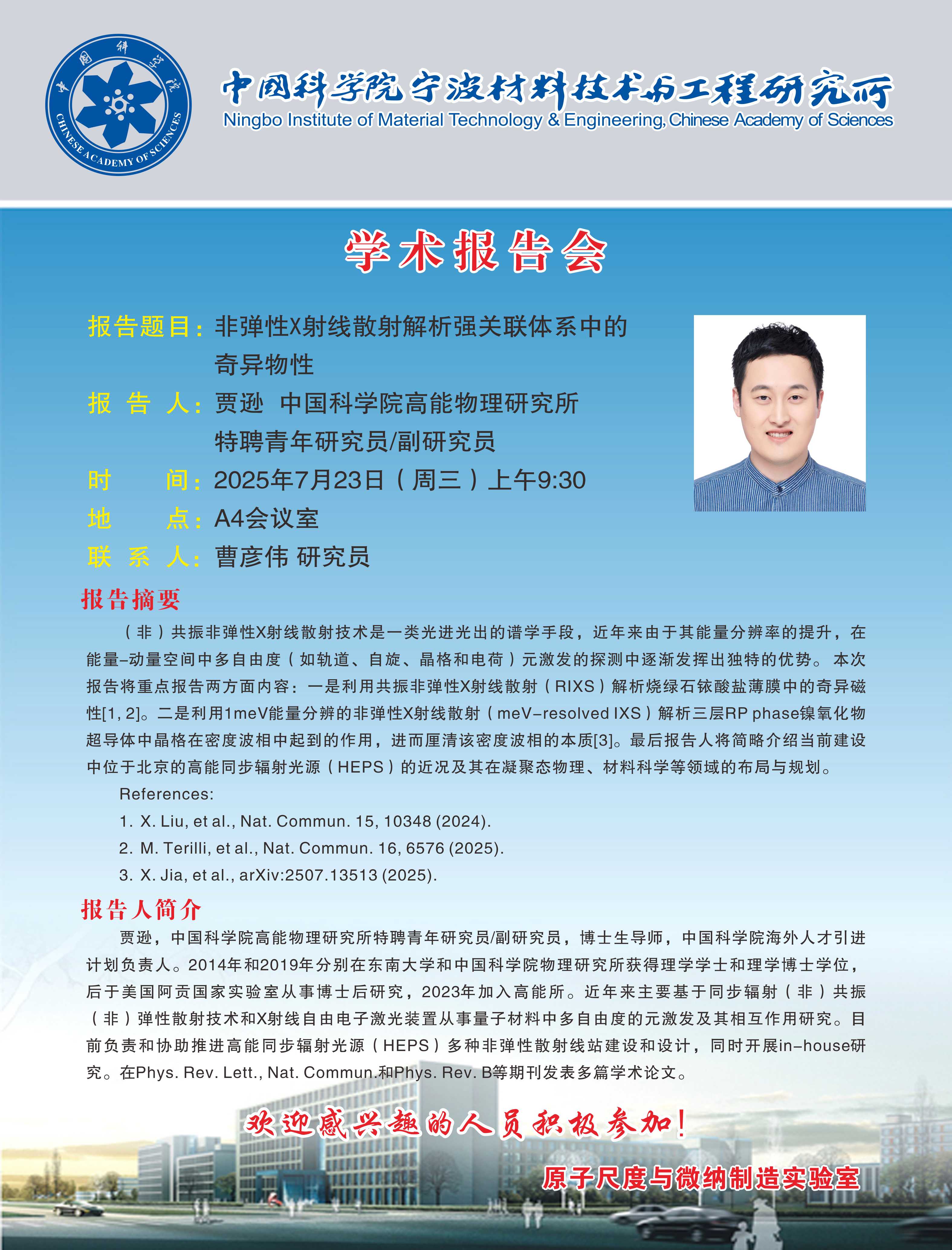 7月23日:贾逊:非弹性X射线散射解析强关联体系中的奇异物性
