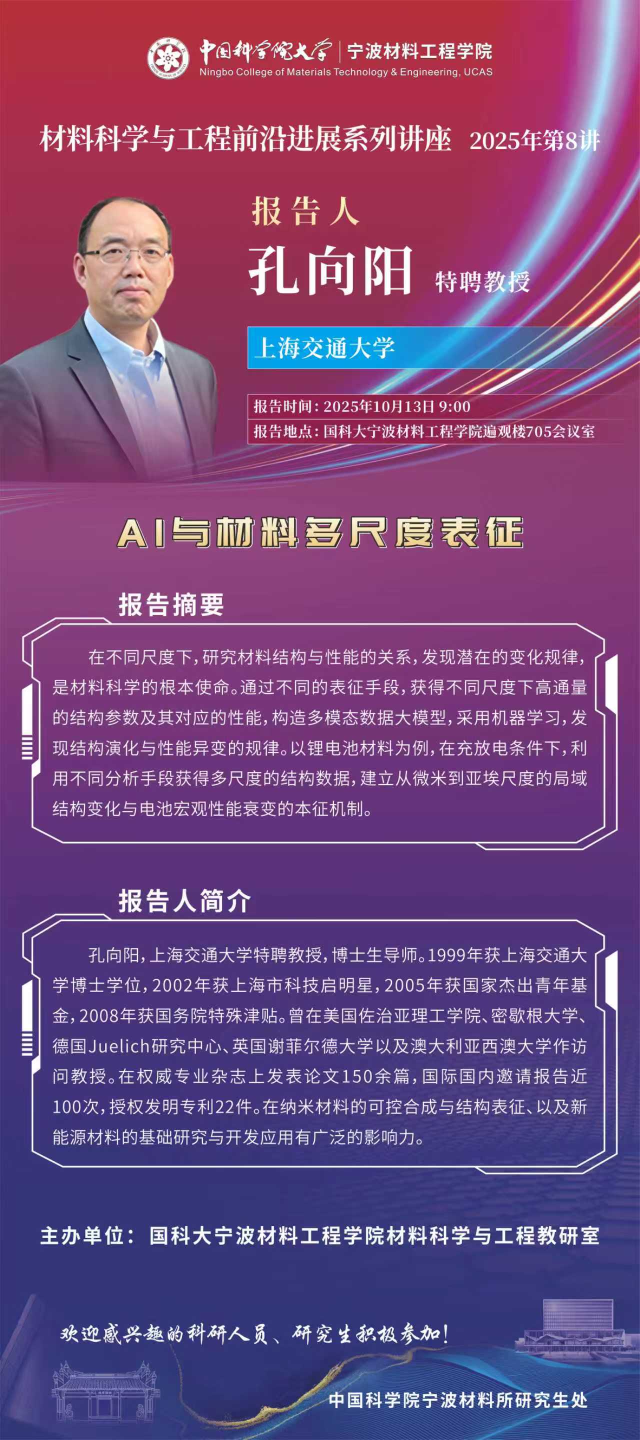 10月13日:孔向阳:AI与材料多尺度表征