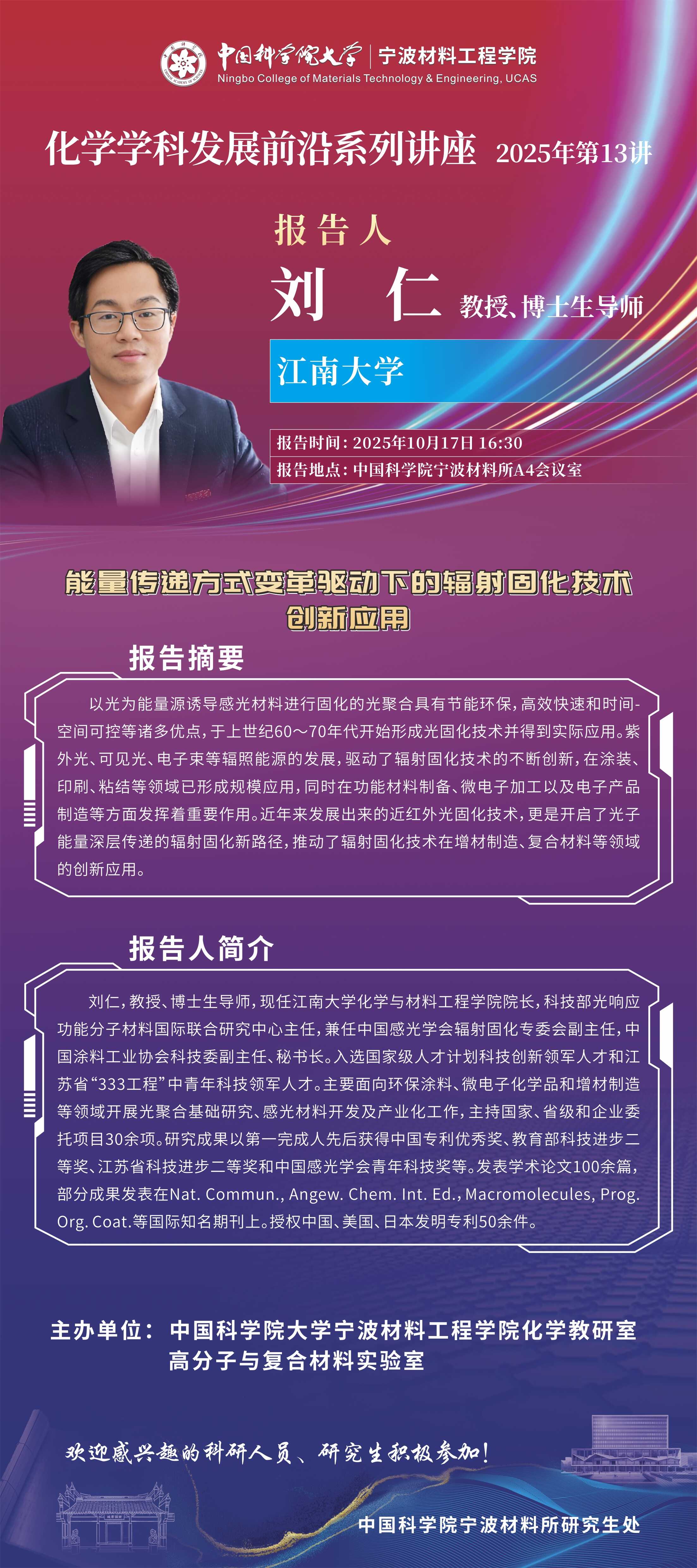 10月17日:刘仁:能量传递方式变革驱动下的辐射固化技术创新应用