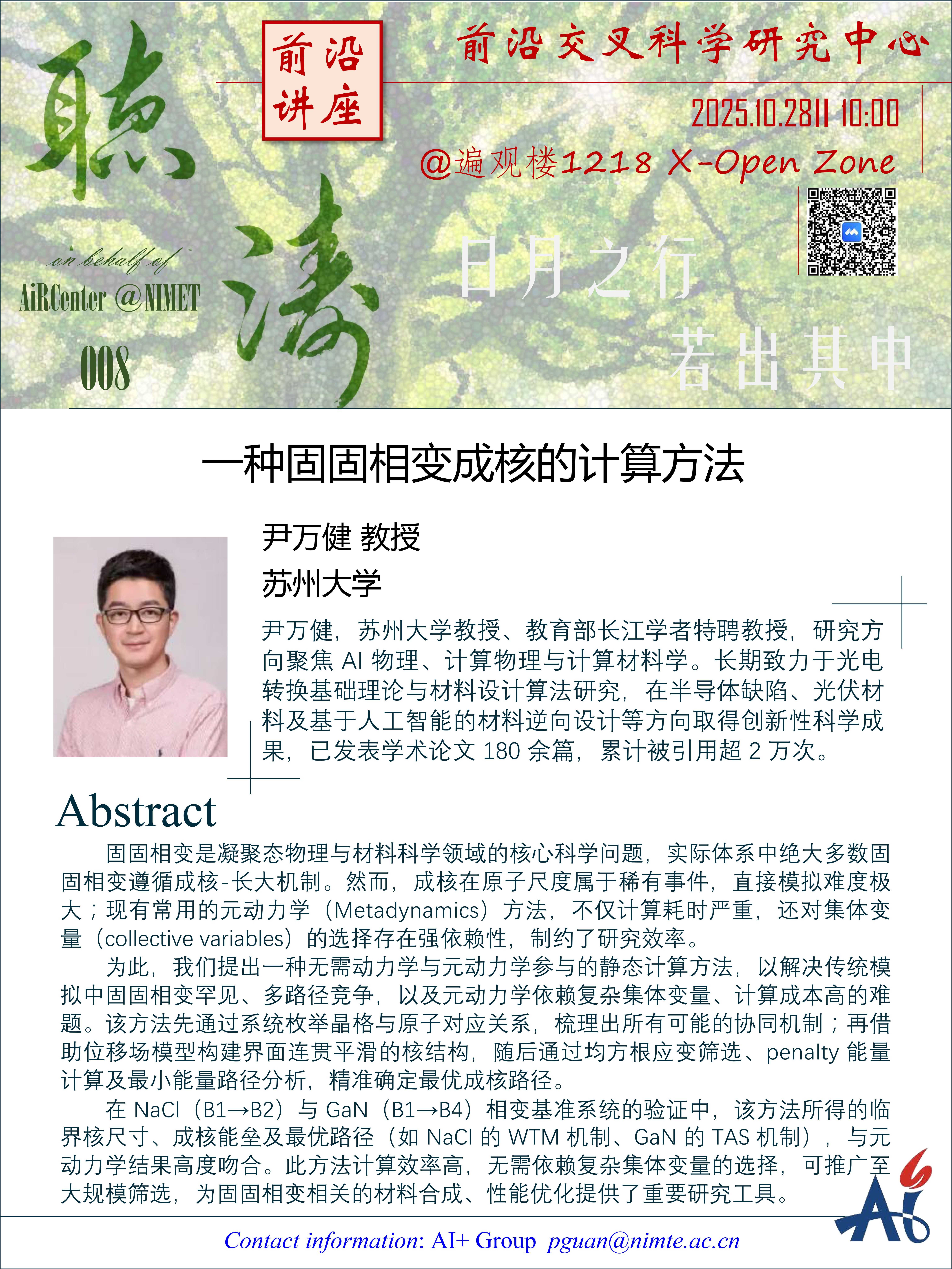 10月28日:尹万健:一种固固相变成核的计算方法