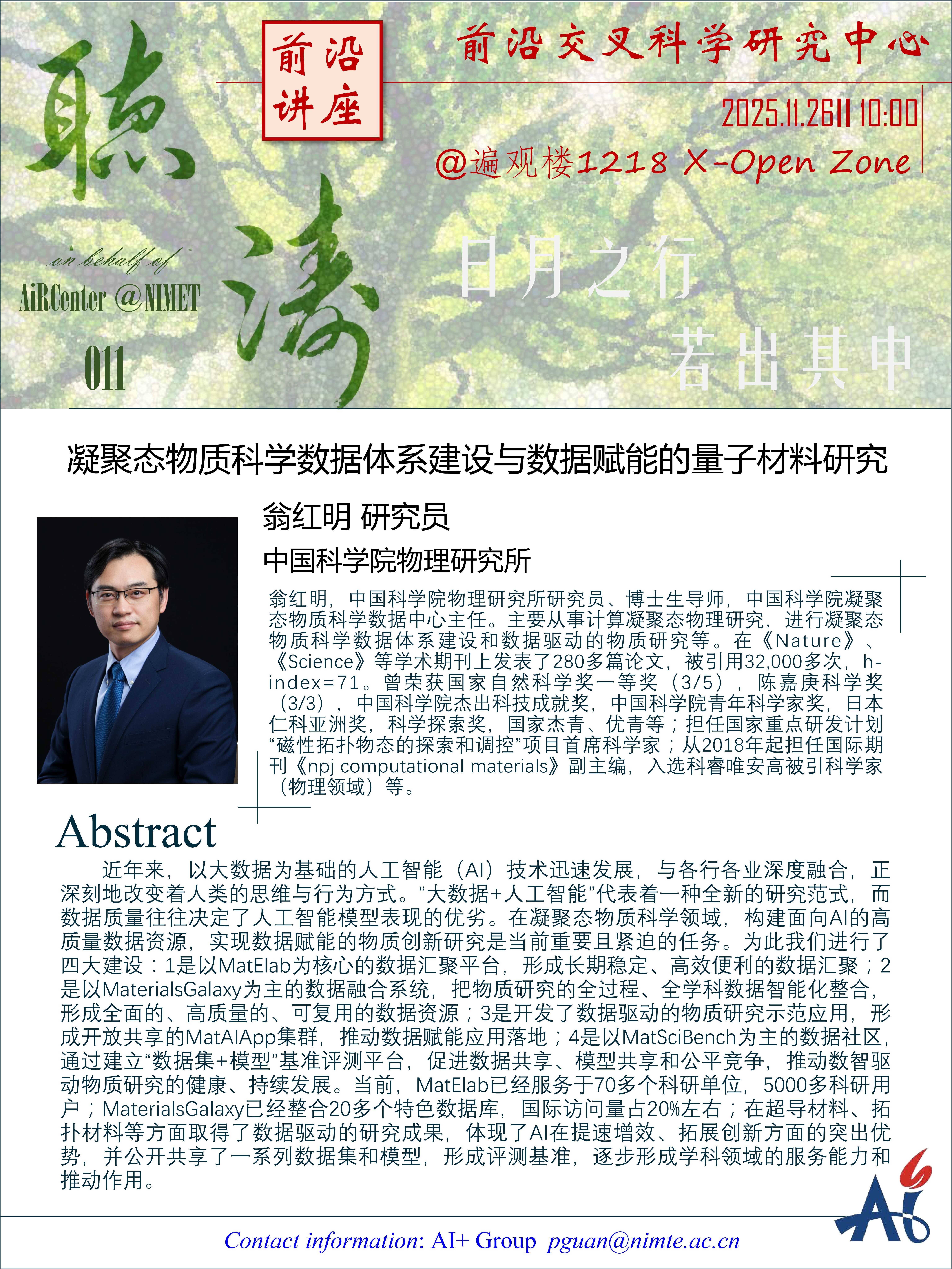 11月26日:翁红明:凝聚态物质科学数据体系建设与数据赋能的量子材料研究