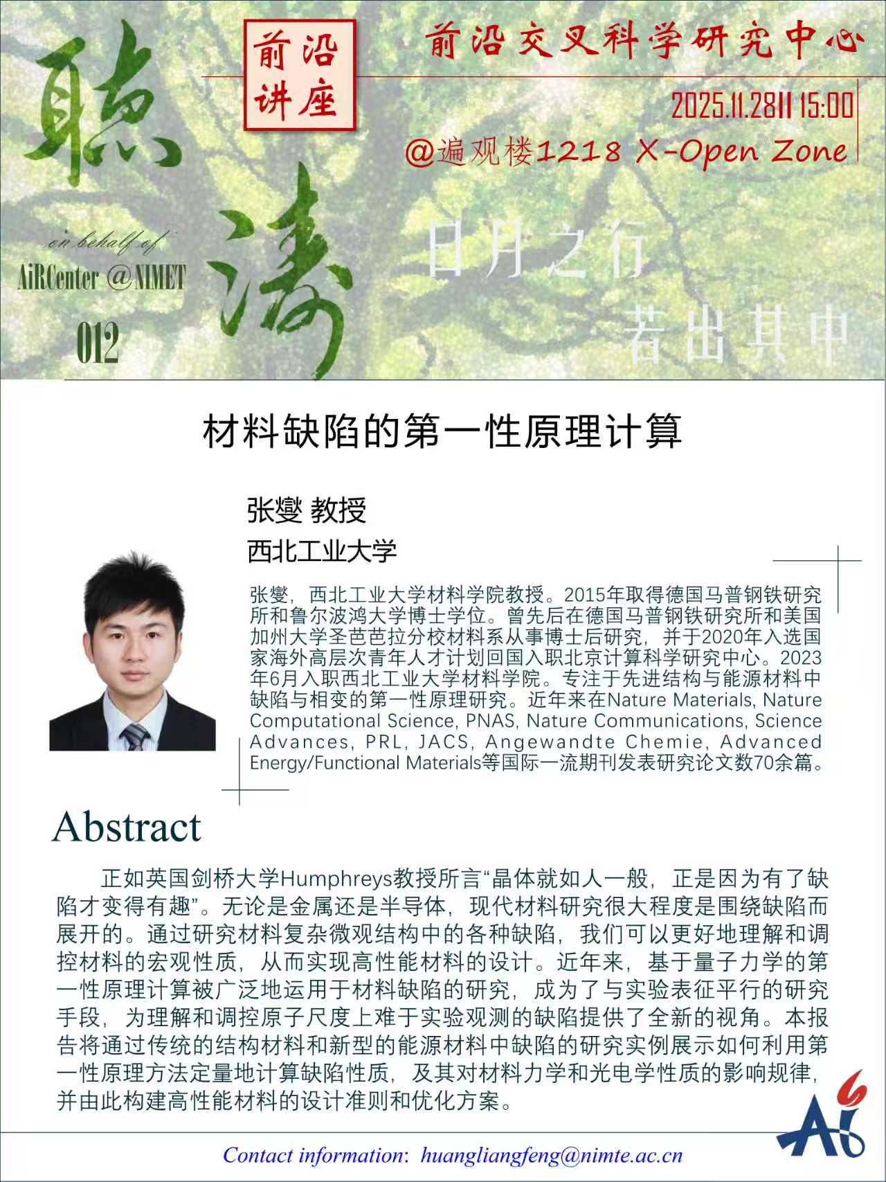 11月28日:张燮:材料缺陷的第一性原理计算