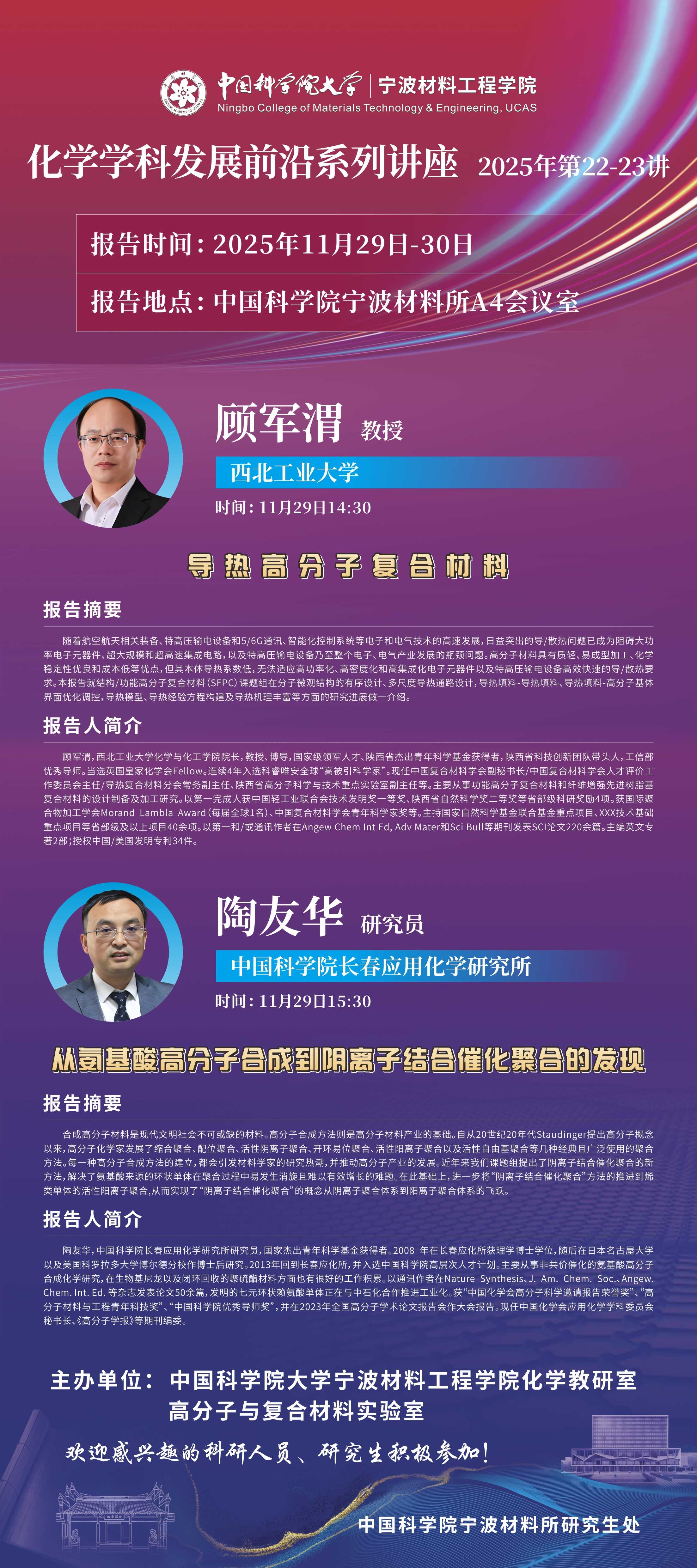 11月29日:化学学科发展前沿系列讲座 2025年第22-23讲