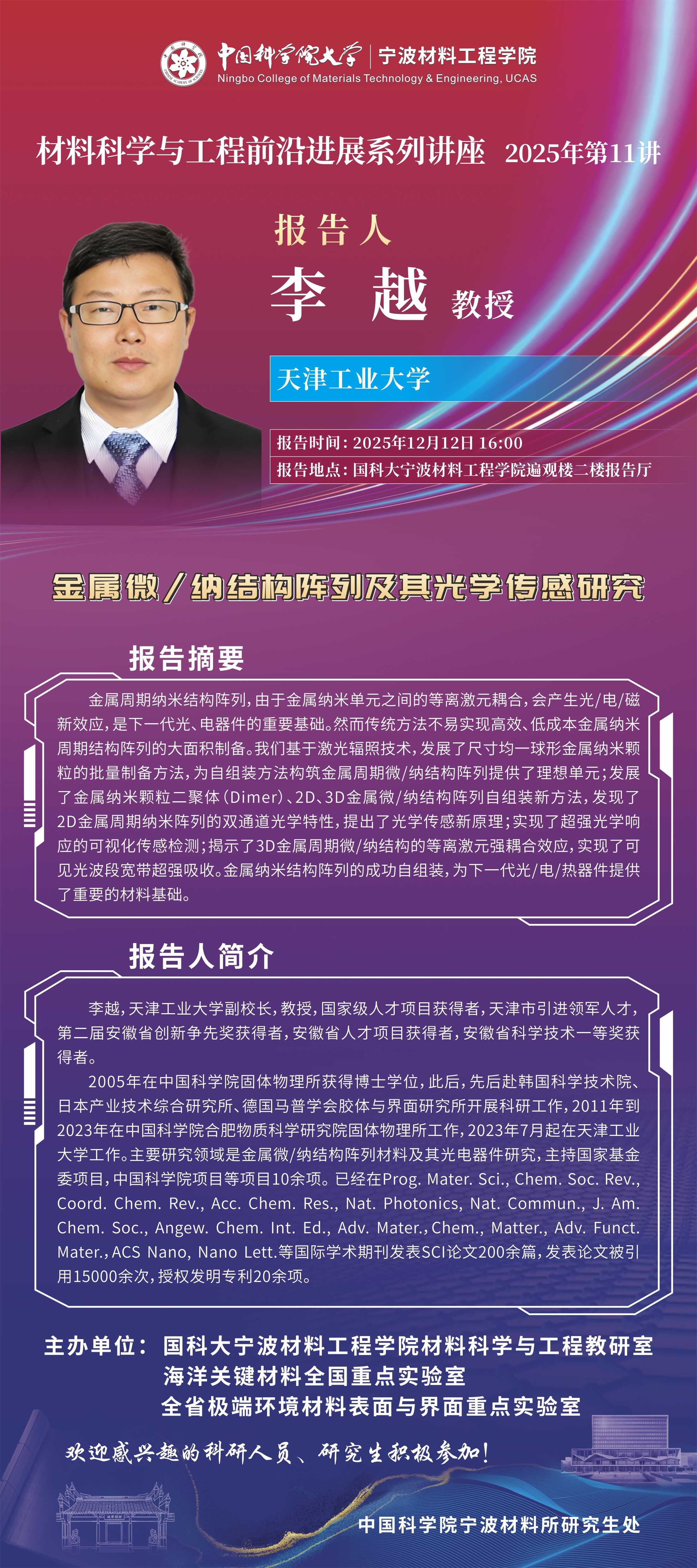 12月12日:李越:金属微纳结构阵列及其光学传感研究