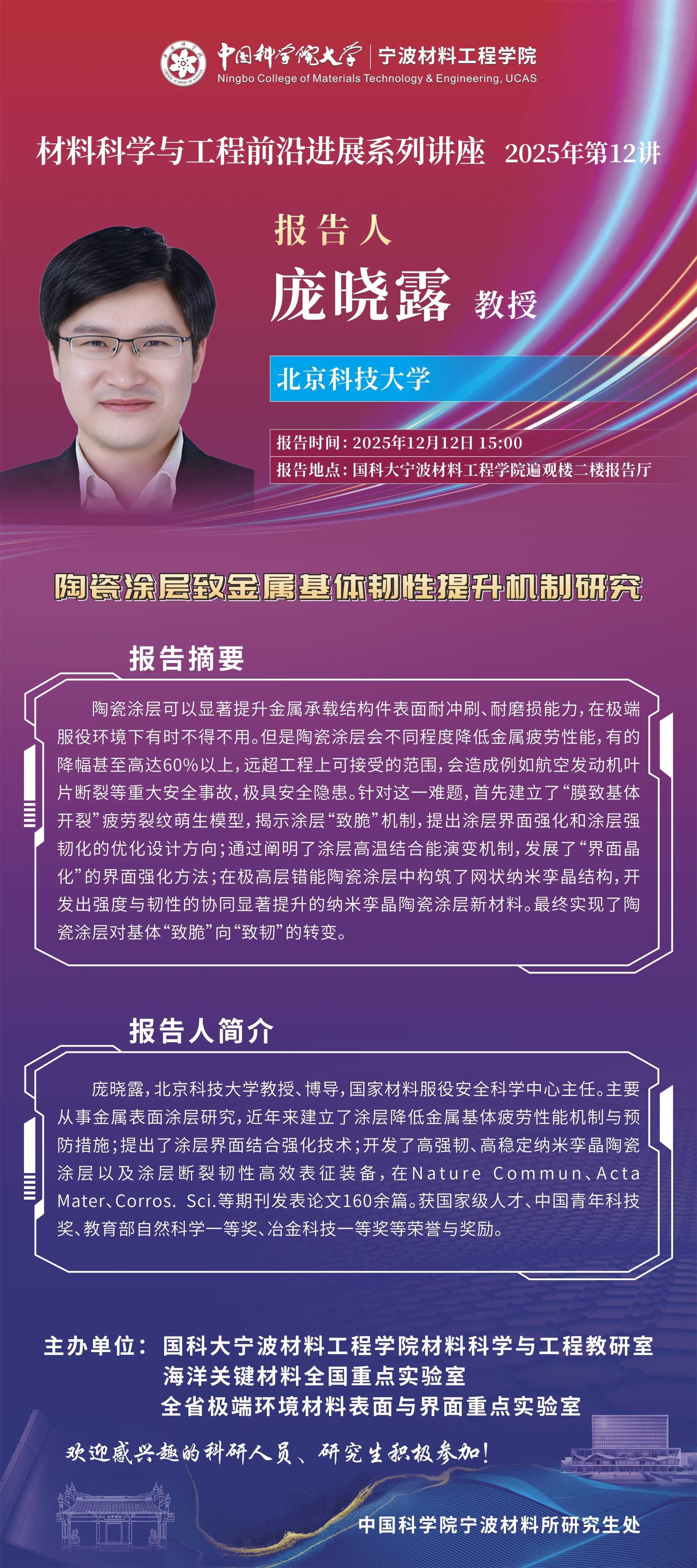 12月12日:庞晓露:陶瓷涂层致金属基体韧性提升机制研究