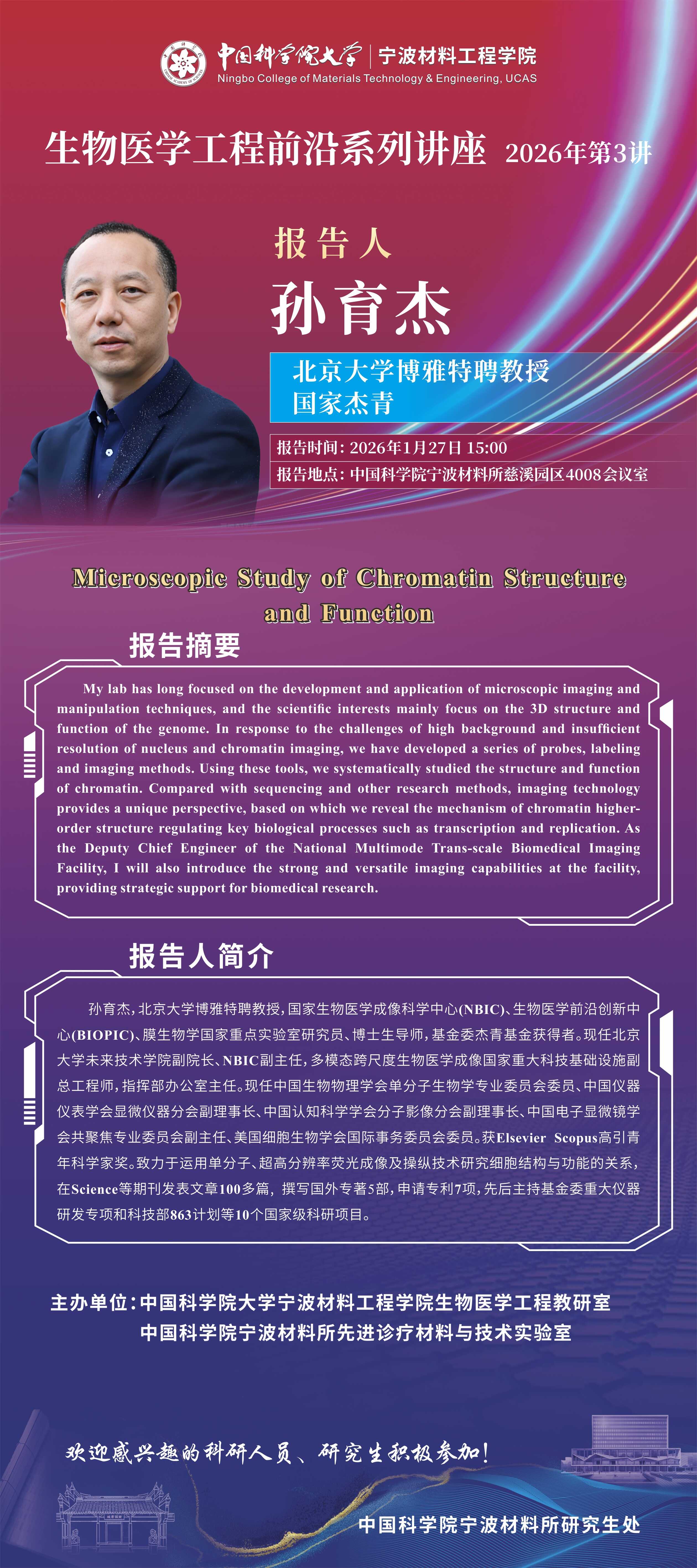 1月27日:孙育杰:Microscopic Study of Chromatin Structure and Function