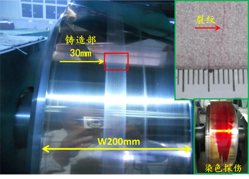 2014年4月,合作双方共建“非晶急冷装备关键技术研发中心”,以解決非晶带材生产的关键部件的冷却铜轮和喷嘴寿命低下的技术问题,促进非晶产业的发展。在双方的密切配合下,改进设计并加工了非晶冷却铜轮,重点研究了非晶合金带材生产条件下的铜辊疲劳行为。通过研究,再现了非晶合金带材生产过程中冷却辊表面的常见缺陷,解析了疲劳裂纹产生的温度、圧力、冷速、时间等各种条件的影响因子,揭示了铍铜合金在快淬冷却辊工作环境下的裂纹产生机理,为改进铜轮寿命提供了理论依据。另外,还研制了长寿命的新型耐火陶瓷喷嘴。项目一期研究工作按照实施计划顺利完成,各项实验均超过预期效果。