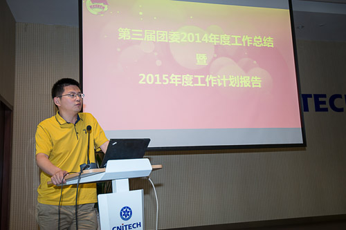 张一鸣结合2014年团委主要工作内容及2015年团委工作计划做了报告。他指出2014年是新一届团委班子成立的一年,一年来团委先后完成了支部撤并、支部委员换届、团员队伍梳理等工作,并开展了团干部座谈会、与高新区团委互访等卓有成效的活动。在刚刚过去4月份,团委也成功举行赴四明山缅怀先烈活动,在未来的几个月里团委将陆续开展“尊老爱幼”、“科学家进校园”、“主题辩论赛”、“为知识献爱心”等活动,并以反法西斯战争胜利70周年为契机举办系列爱国主义教育活动。他号召团员青年以饱满的热情积极参与各项活动。