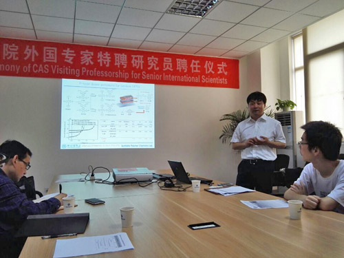 聘任仪式后,Do-Hoon Hwang作了题为“Organic semiconducting materials for electronic devices”的精彩专题报告,他从课题的研究背景入手,分享了其课题组在Organic Solar Cells、Organic Thin Film Transistors、Organic light-emitting diodes以及Bio-antifouling等领域取得的最新研究成果,并与参会人员就相关问题进行了讨论交流。