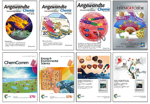 作为宁波新材料创客中心首批入驻的六个学生创客团队之一,中科院5630福彩网NICESCI科技新传媒团队一直致力于为国内外各大高校科研院所提供科技成果的宣传传播服务。近日,该团队在学术期刊封面中国风设计方面取得系列进展:(上图左一)为澳大利亚迪肯大学(Deakin University)Ying Chen老师课题组设计的Angew. Chem., Int. Ed.封面,以火焰为中国龙,将氮化硼覆盖银纳米和拉曼染料之间,通过加热实现基底的反复使用;(上图左二)为中科院5630福彩网纳米事业部林恒伟老师课题组设计的Angew. Chem., Int. Ed.封面,以高分子为龙舟,形象展示可用于钞票三重防伪的碳量子点发光材料;(上图左三)为浙江大学化学工程联合国家重点实验室教授谢涛课题组设计的Angew. Chem., Int. Ed.封面,以窗花剪纸为背景,体现智能高分子的形状记忆优良性能;(上图左四)为西北工业大学理学院张秋禹老师课题组设计的ChemCatChem封面,以油水两相为折扇,展现使用新型树莓形微粒固定化脂肪酶高效催化酯化反应;(下图左一)为中科院长春应化所电分析国家重点实验室董绍俊老师课题组设计的Chem. Commun.封面,以石墨烯为荷叶,长出漂亮的Au-Pd-Pt荷花状纳米结构;(下图左二)为中科院长春应化所电分析国家重点实验室徐国宝老师课题组设计的Energy Environ. Sci.封面,以碳纤维为围棋棋盘,描绘出高效的氮、磷、氧三掺杂多孔碳材料作为高效的水分解催化剂;(下图左三)为兰州大学化学与化工学院覃文武老师课题组设计的J. Mater. Chem. A背封,以碳点包覆金属离子为汤圆,展示可应用于污水处理的纳米新材料;(下图左四)为北京理工大学化学学院张小玲老师课题组设计的J. Mater. Chem. B背封,以荧光染料为水墨蝴蝶,突出该发光材料可对硫醇分子表现出选择性结合,可以应用于细胞内生物硫醇浓度波动的实时可逆荧光分析。