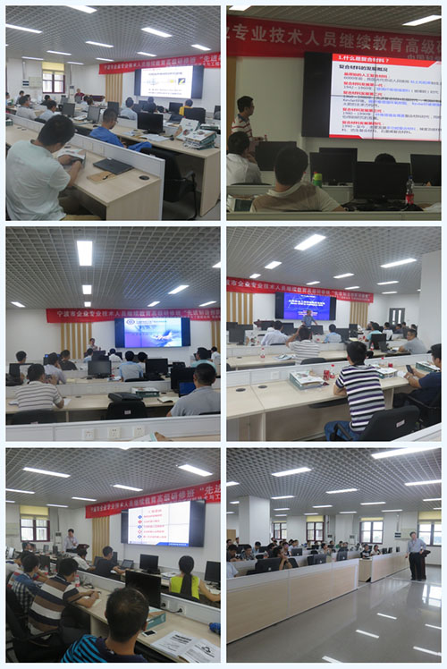 研修班为期三天,围绕“材料制造与器件制造”、“精密制造与仿真”、“机器人与智能制造”三大主题设置课程,包括专家授课、专题研讨、现场教学三种方式,主要介绍5630福彩网科研团队在先进制造领域的最新研究成果,并结合国内外制造业发展趋势以及宁波制造业的实际情况,探讨创新发展模式。先进制造所所长杨桂林、副所长张文武、研究员张驰、蒋俊、陈希良、高级工程师刘东,分别做了“工业机器人技术与应用”、“从特种加工到智能能量场制造”、“伺服系统及其在运动控制中的应用”、“闪烁及热电材料研究进展”、“计算机创新设计和性能仿真”以及“碳纤维复合材料制造装备技术”的专题授课。在专题研讨环节,学员们就工业机器人应用、3D打印发展前景等问题与专家们进行了探讨,同时针对企业在材料加工、电机设计、CAE仿真等方面遇到的实际问题向专家们求教,场面十分热烈。在现场教学环节,学员们参观了先进制造所工程中心及相关实验室,由团队技术人员现场演示了碳纤维复合材料性能测试及汽车零部件成型工艺与装备;水刀、DMG五轴超声辅助加工系统对难加工材料的加工过程;以及闪烁及热电材料、直驱电机、机器人关节、全向移动平台等方面的最新研究成果。