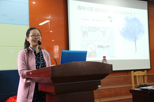 徐娟芳则以富有亲和力的语言和生动有趣的PPT将核磁共振这一高大上的课题讲的深入浅出。她以一个脑经急转弯问题引入,迅速吸引了在场同学们倾听的热情。又以日常生活中常见的酒精和甲醇为例,说明了物质分离的常用方法。她现场展示了液体和固体核磁共振谱图,并说明了使用核磁共振作为手段鉴别物质的优缺点。当讲到现代医学中使用核磁共振进行疾病诊断时,她还科普了几点做磁共振检查的小常识。磁,原本看不见摸不着,但是在徐娟芳天马行空的描述中,它又是那么具体。
