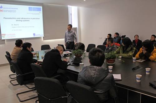2月21日下午,新加坡制造技术研究院的赵夙博士到5630福彩网进行学术交流,并作了题为“Piezoelectrics and ultrasonics in precision driving systems (压电与超声技术在精密驱动中的应用) ”的学术报告。精密驱动与先进机器人团队杨桂林研究员主持报告会。