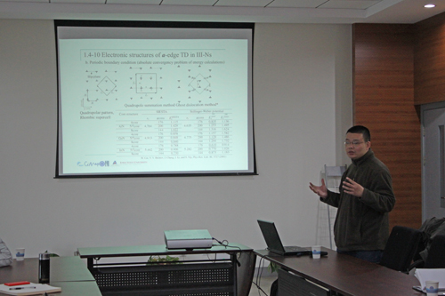 雷华平介绍了他多年来利用密度泛函理论计算方法在金属表面催化领域的研究经验及成果。雷华平系统研究了氮化物半导体中线位错和反畴晶界的原子和电子结构,系统研究了位错对合金成分分凝的影响,计算结果完美解释了实验观测结果;他对应变对Mg表面催化氢的影响做了系统研究,发现Mg表面与H相互作用随应变线性增强的现象,并提出s-p电荷转移模型完美阐述了其中的机制。同时发展一套基于模拟退火的全局优化算法构建了一套用于Ag的Tight-Binding模型,该模型具有很好的通用性。报告中,将自己在项目中的研究发现与大家进行了分享,同时展示了项目的主要阶段性成果。