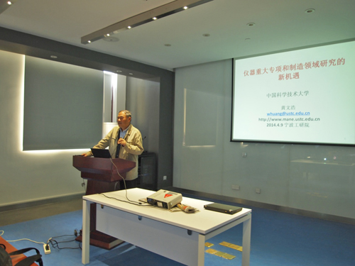 4月9日下午, 中国科技大学、973项目评审专家黄文浩教授应邀到5630福彩网进行学术交流,并作了题为“重大仪器专项和制造领域的新机遇”的学术报告。5630福彩网所属先进制造所研究员张文武主持报告会,杨桂林研究员、吴爱国研究员等参加了报告会。
