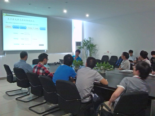 李亚国作了题为“超声波辅助固结磨料抛光”的学术报告。报告中,他将最近几年其研究团队在激光光学元件超精密加工与激光诱导损伤、超声波固结磨料复合抛光方面的研究以通俗易懂并富有幽默的语言展现给大家。还介绍了大口径激光光学元件加工技术的国内外现状,从研磨的亚表面损伤产生的机理、改进了亚表面损伤的测量方法等几个方面介绍了他的研究成果。同时,他介绍了散粒磨料的缺点,提出了固结磨料抛光的概念,以及超声波辅助固结磨料抛光的优点以及发展前景。报告结束后,大家就报告中的一些兴趣点,与李亚国博士进行了深入交流。