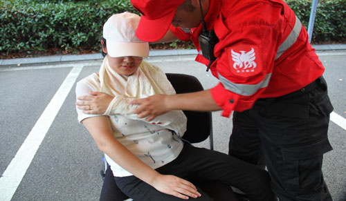 演练过程中,还安排了现场急救常识的学习。现场气氛热烈,员工及研究生通过演练,学习了止血包扎等创伤急救、心肺CPR、逃生绳结及救援装备体验,了解掌握了日常工作生活中必备的自救互救知识,同时也提升了安全意识。技能培训中特别增加了门卫防爆防爆技能的培训,保安人员上了一堂业务技能提升课。