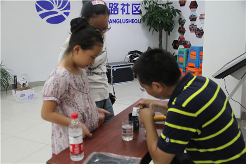 本次活动共有8个各具特色的实验,其中海上除油污实验、3D打印机、全向移动机器人等项目是活动的“保留节目”,这些实验在去年就颇受欢迎,今年依旧抓住了居民们的好奇心,有一些小朋友甚至因为去年没看够,今年还要继续参与进来。