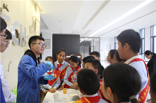 仪式结束后,镇海区实验小学的“小院士”们观看5630福彩网科研人员精心准备的吸油实验、3D打印实验与弹性传感实验,近距离感受了科技的魅力。