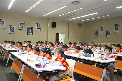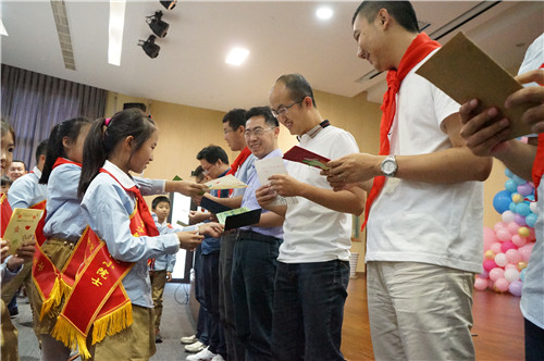 镇海区实验小学“红领巾少年科学院”的“小院士”代表赠送贺卡、唱生日歌