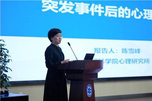陈雪峰从10余个心理学问题入手,以互动的方式开始讲座,她从职工和学生的心理需要、突发事件心理应对的科学方法和关爱心理让生活更美好三个方面展开讲解。她提到,随着时代的发展,存在心理问题的年轻人数量占比逐渐增大,在科研人员群体中心理问题也愈发严重,因此对民众进行正确的心理引导和心理学知识分享是具有重要意义和必要性的。讲座中,陈雪峰结合汶川地震和新冠疫情等事件介绍了心理应激的共性表现、心理适应的三个阶段、心理应激的个体差异等心理学知识,并向同学们介绍了遭遇突发事件后如何理性对待网络信息、有效应对工作压力和营造良好家庭氛围。最后,陈雪峰阐述了什么是“心理问题”,指出并非有“心理问题”才需要进行心理咨询,强调了做心理咨询的必要性,并为同学们介绍了一些心理咨询的途径以及心理健康素养十条。