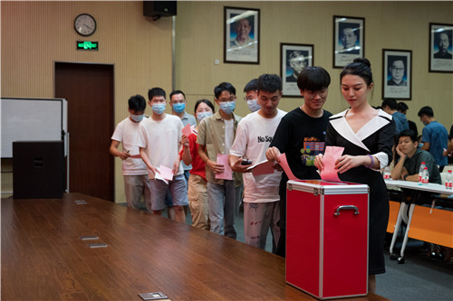 最后,由许舒婷公布选举结果,经大会投票,选举蒋倩、俞崇文、杨九铜、楼其村为第十五届研究生会主席团成员。