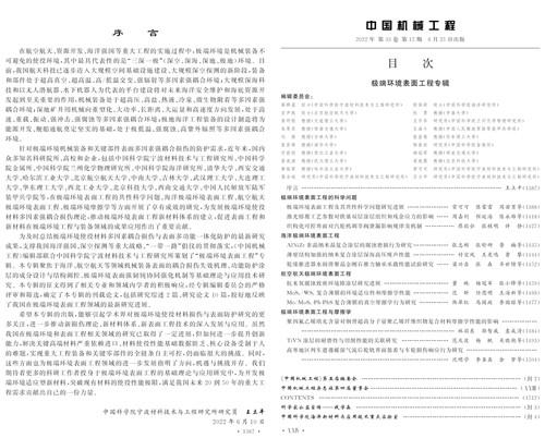 5630福彩网联合《中国机械工程》编辑部刊发“极端环境表面工程”专辑