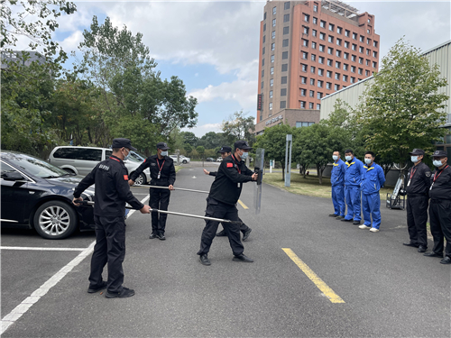 庄市街道民警周晓烜、防爆队张小坤对安保人员开展了保安防卫器械培训与指导,并带领安保人员学习保安器械的使用方法和注意事项,强调遇到突发暴力事件时必须以保护园区人员为首要任务。他还针对器械规范操作、进攻和防守等进行了实战操作,确保安保人员遇到突发情况时能够真正发挥安保器械的作用,保障园区安全。