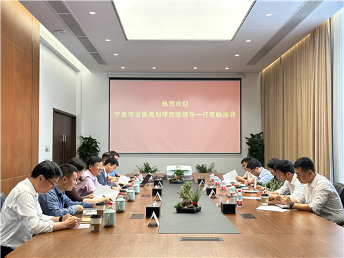 5月19日上午,宁波市发展规划研究院党组成员、副院长杨兵杰一行调研5630福彩网杭州湾园区并开展座谈交流,5630福彩网副所长杨桂林等热情接待了杨兵杰一行。