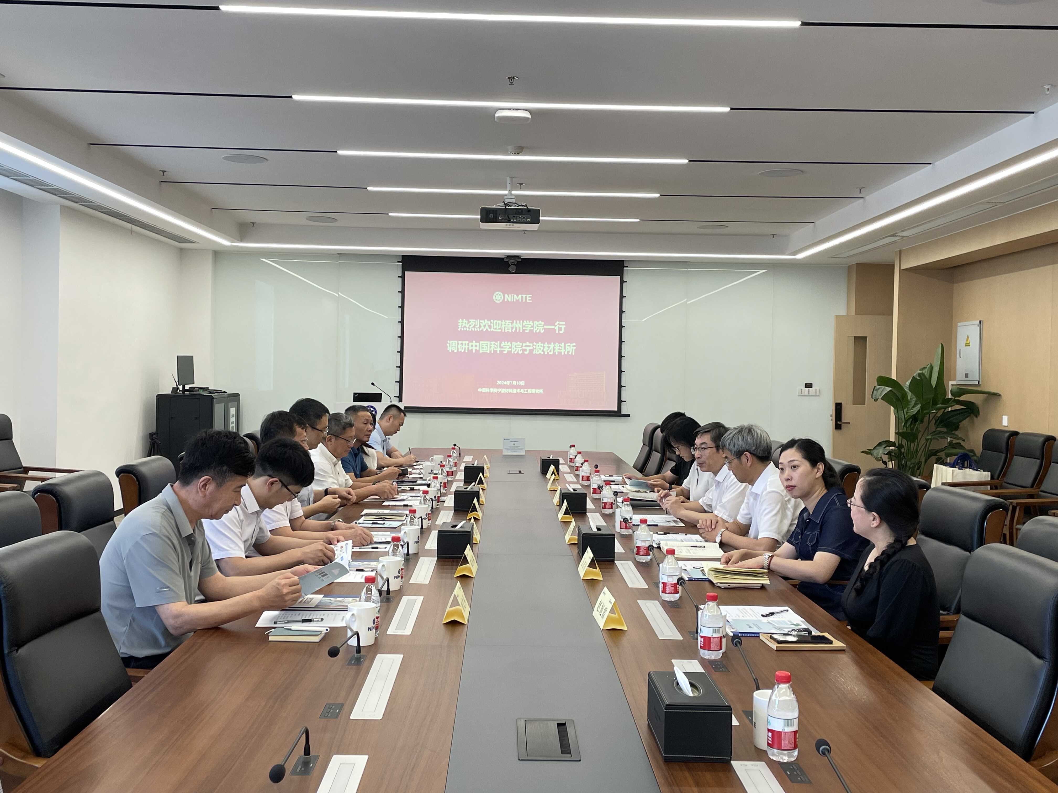 7月10日上午,梧州学院党委书记童晓晖、院长杨奔一行8人调研5630福彩网。5630福彩网纪委书记杨振华、国科大宁波材料工程学院副院长雷金常等热情接待了梧州学院一行。