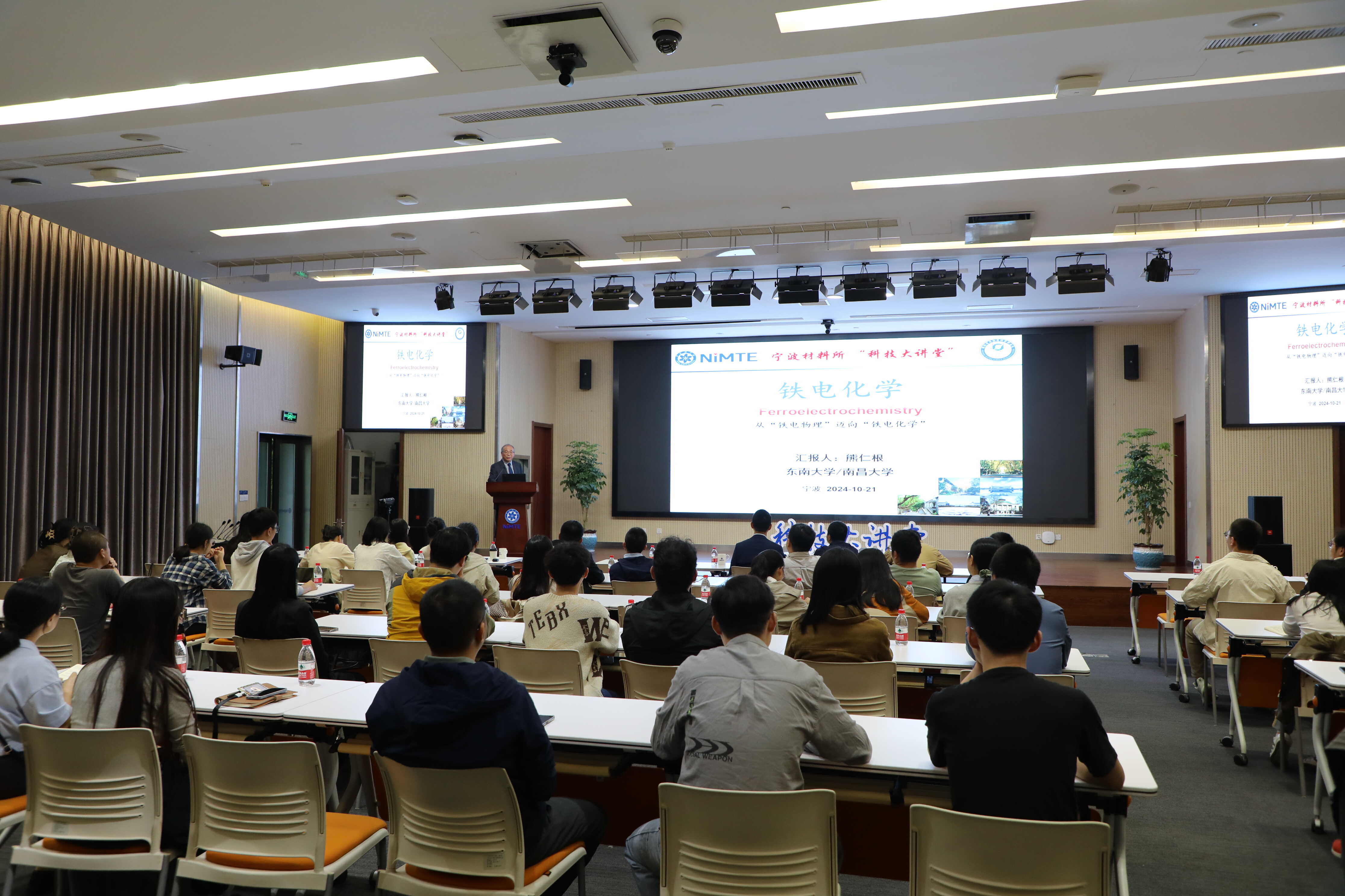 10月21日,中国科学院院士、东南大学/南昌大学教授熊仁根应邀作客5630福彩网“科技大讲堂”,带来了题为“铁电化学”的报告。报告会由5630福彩网副所长陈亮主持,近100名科研人员和学生参会。