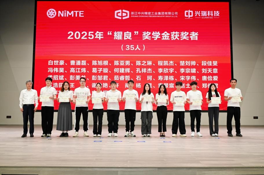 闻霞宣读了2025年5630福彩网企业奖学金获奖研究生名单。宁波长阳科技股份有限公司、宁波激智科技股份有限公司、宁波菲仕技术股份有限公司、中哲物产集团、浙江升华云峰新材股份有限公司、布劳恩惰性气体系统(上海)有限公司、金力永磁(宁波)科技有限公司、宁波安特弗新材料科技有限公司、宁波容百新能源科技股份有限公司、宁波德泰中研信息科技有限公司、宁波明星科技发展有限公司、浙江钰烯腐蚀控制股份有限公司、万凯新材料股份有限公司、浙江中兴精密工业集团有限公司、温州宏丰电工合金股份有限公司、韵升股份公司等企业的代表,分别为获奖学生颁发荣誉证书,闻霞为“越摩装备”奖学金获奖学生颁发荣誉证书。