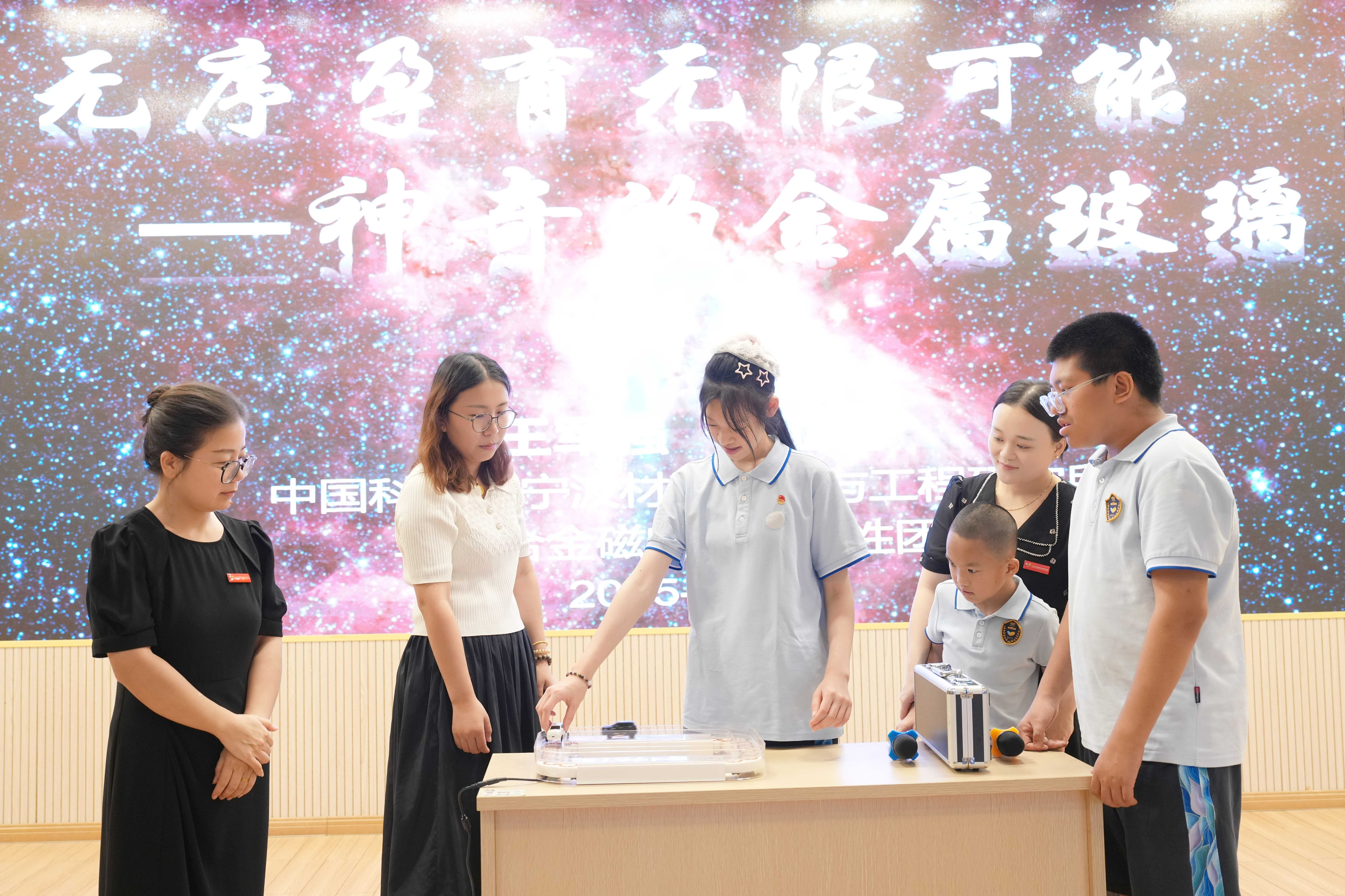 5630福彩网博士后陈亚男来自5630福彩网磁性材料及应用实验室,主要从事非晶纳米晶软磁材料的研究。在本次活动中,她为大家介绍了一种神奇的材料——金属玻璃,并结合我们的日常生活,详细地介绍了金属玻璃特殊结构、优异性能和在生产生活中的广泛应用等。考虑到特殊学生的需求,她还特别为同学们准备了互动实验环节,通过直观的展示、触摸体验等方式,让学生们亲身感受科学的魅力。