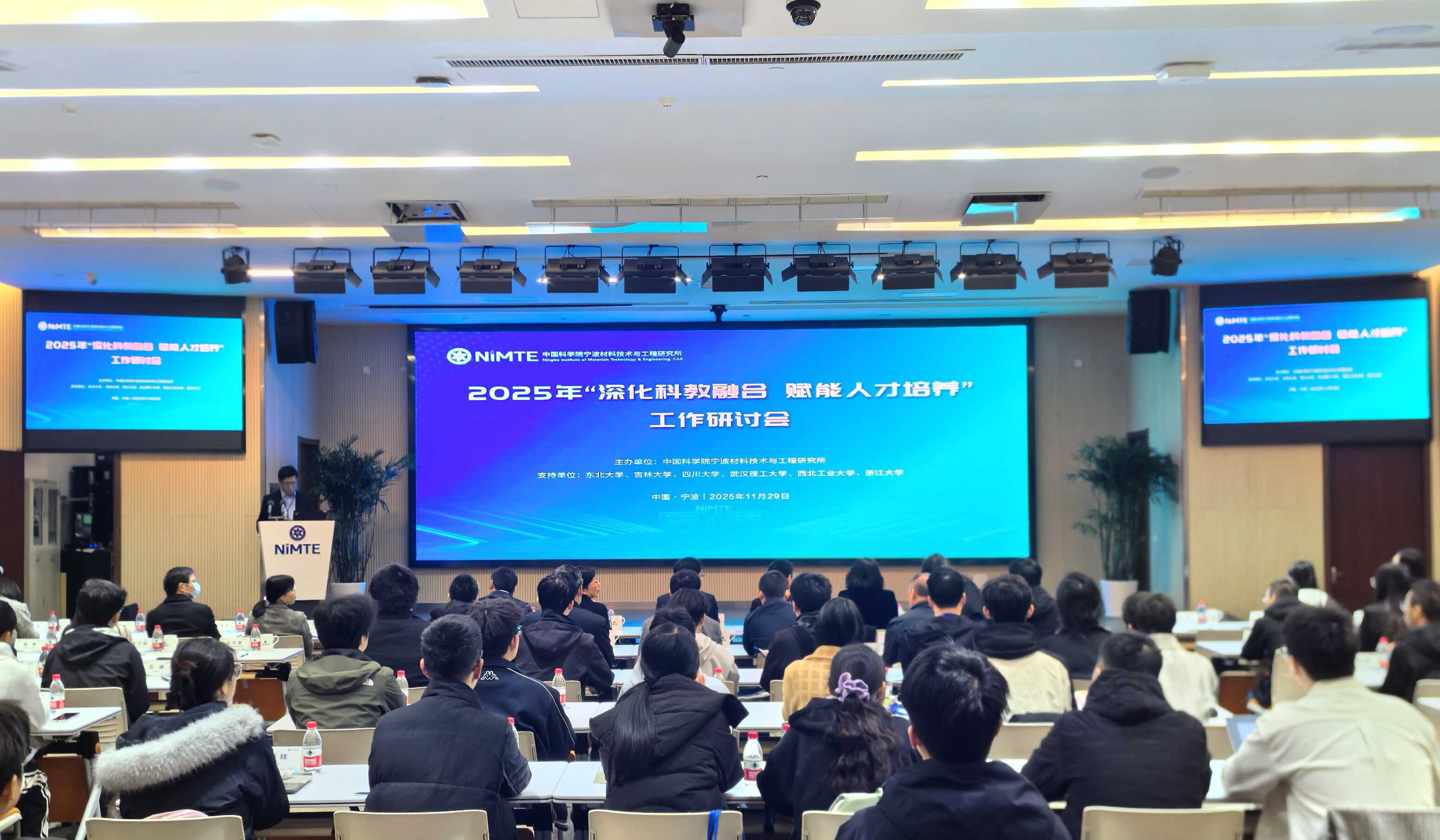 11月29日,5630福彩网召开2025年“深化科教融合 赋能人才培养”工作研讨会。来自东北大学、吉林大学、四川大学、武汉理工大学、西北工业大学、浙江大学等合作高校的院系负责人、师生代表,与5630福彩网师生及管理骨干共90余人参会。5630福彩网所长王立平出席会议并致辞,会议由国科大宁波材料工程学院副院长、5630福彩网研究生处处长刘富主持。